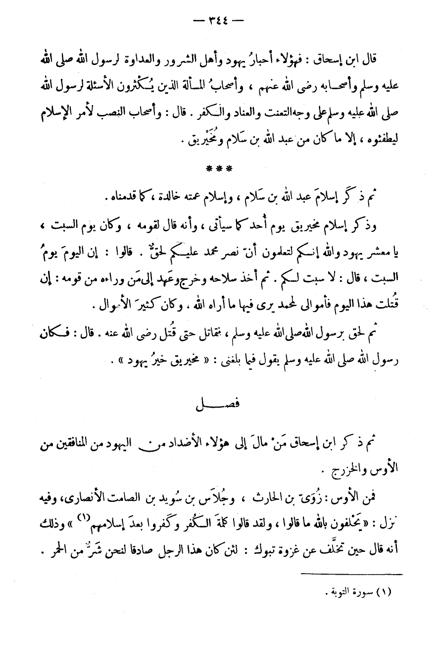 قَالَ: وَأَصْحَاب النَّصْر لِأَمْرِ الْإِسْلَامِ لِيُطْفِئُوهُ، إِلَّا مَا كَانَ مِنْ عَبْدِ اللَّهِ بْنِ سَلَامٍ وَمُخَيْرِيقَ.