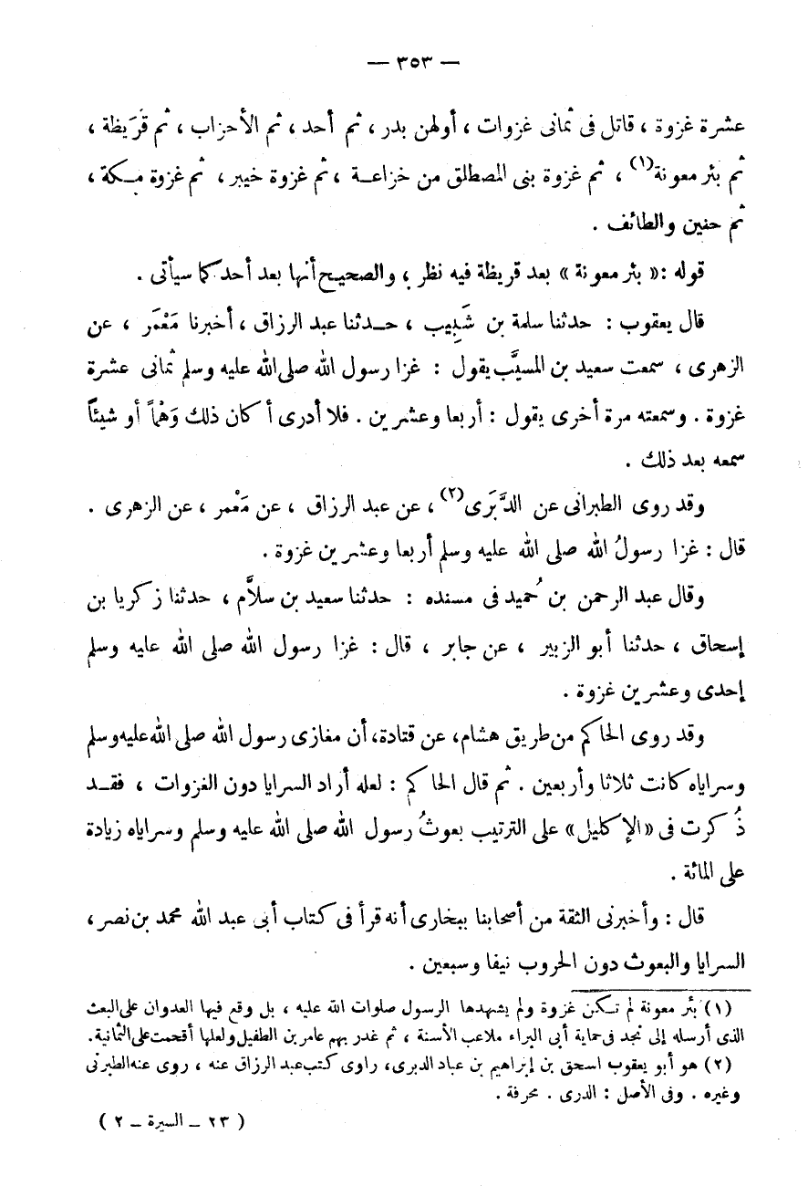 (1) بِئْر مَعُونَة لم تكن غَزْوَة وَلم يشهدها الرَّسُول صلوَات الله عَلَيْهِ، بل وَقع فِيهَا الْعدوان على الْبَعْث الذى أرْسلهُ إِلَى نجد فِي حماية أَبى الْبَراء ملاعب الاسنة، ثمَّ غدر بهم عَامر بن الطُّفَيْل ولعلها أقحمت على الثَّمَانِية.