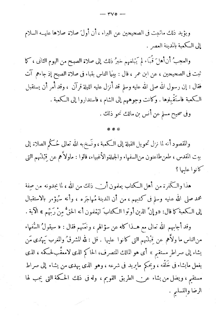 وَفِي صَحِيحِ مُسْلِمٍ عَنْ أَنَسِ بْنِ مَالِكٍ نَحْوُ ذَلِكَ * * * وَالْمَقْصُودُ أَنَّهُ لَمَّا نَزَلَ تَحْوِيلُ الْقِبْلَةِ إِلَى الْكَعْبَةِ، وَنَسَخَ بِهِ اللَّهُ تَعَالَى حُكْمَ الصَّلَاةِ إِلَى بَيْتِ الْمَقْدِسِ، طَعَنَ طَاعِنُونَ مِنَ السُّفَهَاءِ والجهلة والاغبياء، قَالُوا: مَا وَلَّاهُمْ عَنْ قِبْلَتِهِمُ الَّتِي كَانُوا عَلَيْهَا؟ هَذَا وَالْكَفَرَةُ مِنْ أَهْلِ الْكِتَابِ يَعْلَمُونَ أَنَّ ذَلِكَ مِنَ اللَّهِ، لِمَا يَجِدُونَهُ مِنْ صِفَةِ مُحَمَّدٍ صَلَّى اللَّهُ عَلَيْهِ وَسَلَّمَ فِي كُتُبِهِمْ، مِنْ أَنَّ الْمَدِينَةَ مُهَاجَرُهُ، وَأَنَّهُ سَيُؤْمَرُ بِالِاسْتِقْبَالِ إِلَى الْكَعْبَةِ كَمَا قَالَ: " وَإِنَّ الَّذِينَ أُوتُوا الْكِتَابَ لَيَعْلَمُونَ أَنَّهُ الْحَقُّ من رَبهم " الْآيَة.