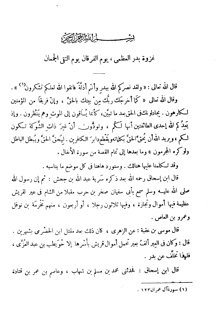 بِسم الله الرَّحْمَن الرَّحِيم غَزْوَة بدر الْعُظْمَى، يَوْمَ الْفُرْقَانِ يَوْمَ الْتَقَى الْجَمْعَانِ قَالَ اللَّهُ تَعَالَى: " وَلَقَدْ نَصَرَكُمُ اللَّهُ بِبَدْرٍ وَأَنْتُمْ أَذِلَّةٌ فَاتَّقُوا الله لَعَلَّكُمْ تشكرون (1) ".