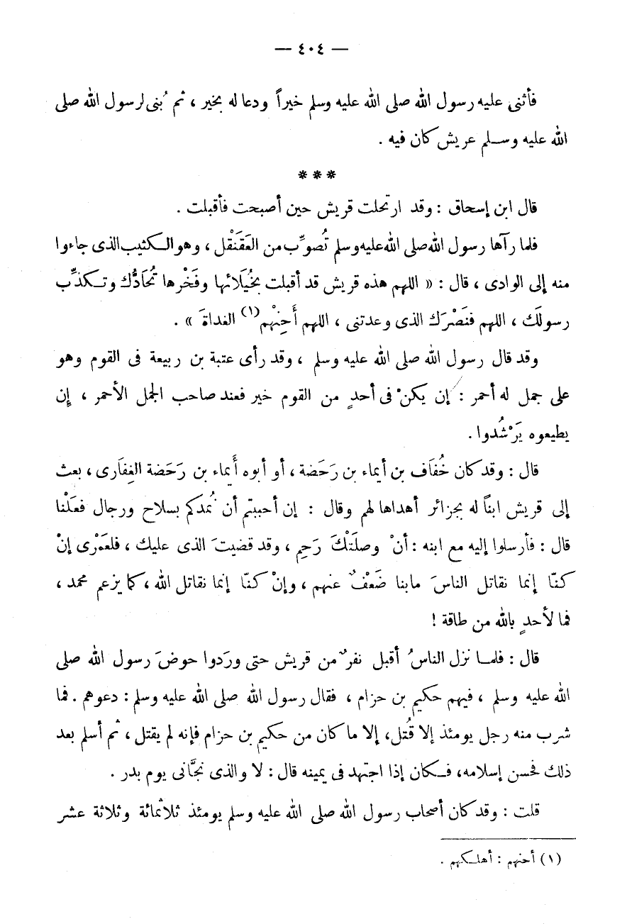 * * * قَالَ ابْنُ إِسْحَاقَ: وَقَدِ ارْتَحَلَتْ قُرَيْشٌ حِينَ أَصْبَحَتْ فَأَقْبَلَتْ.
