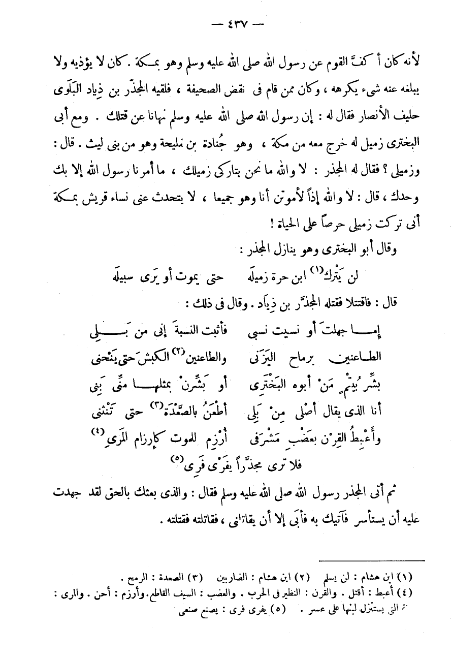 (1) ابْن هِشَام: لن يسلم (2) ابْن هِشَام: الضاربين (3) الصعدة: الرمْح.