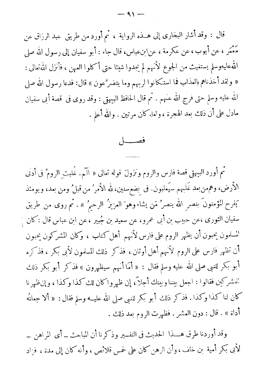 فَصْلٌ ثُمَّ أَوْرَدَ الْبَيْهَقِيُّ قِصَّةَ فَارِسَ وَالرُّومِ وَنُزُولَ قَوْلِهِ تَعَالَى " الم.