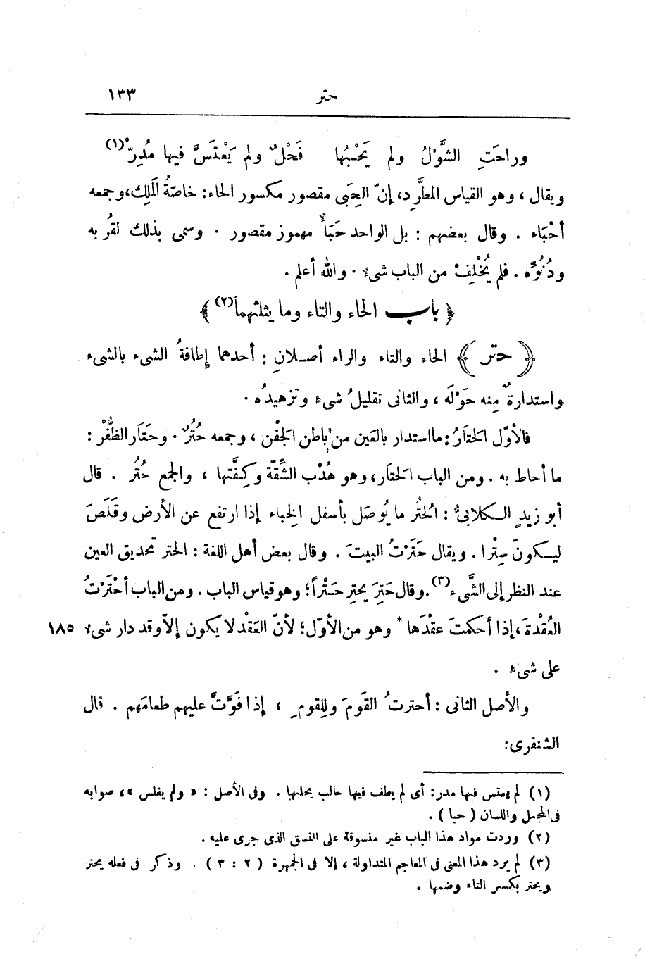 [بَابُ الْحَاءِ وَالتَّاءِ وَمَا يَثْلِثُهُمَا]