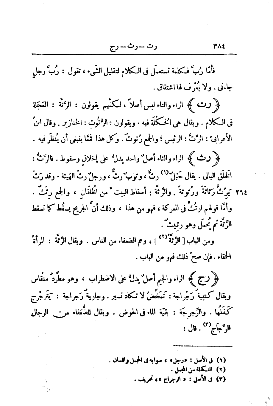 فَأَمَّا رُبَّ فَكَلِمَةٌ تُسْتَعْمَلُ فِي الْكَلَامِ لِتَقْلِيلِ الشَّيْءِ، تَقُولُ: رُبَّ رَجُلٍ جَاءَنِي. وَلَا يُعْرَفُ لَهَا اشْتِقَاقٌ.