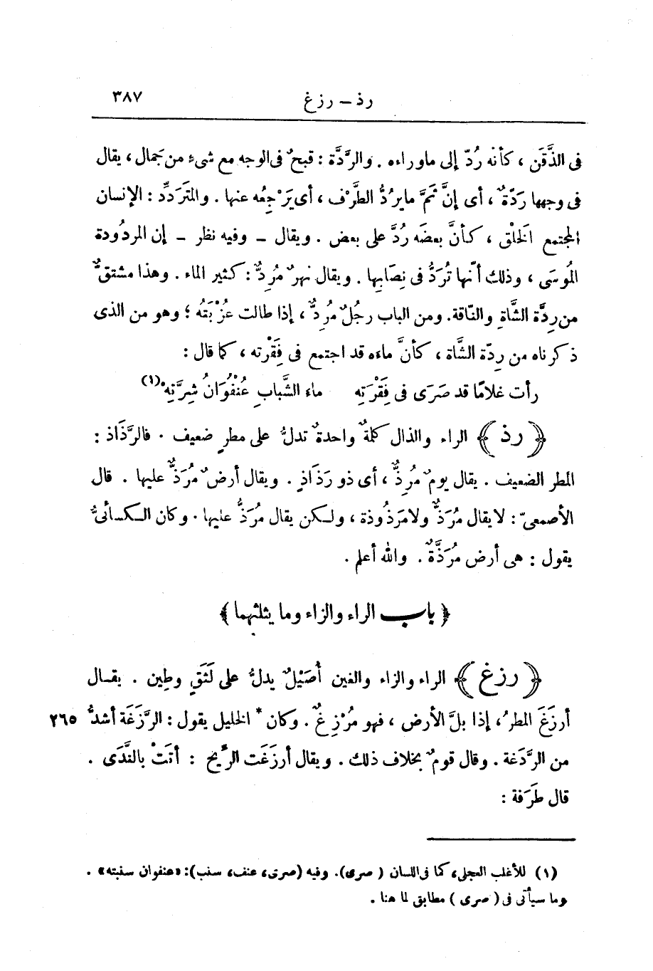 [بَابُ الرَّاءِ وَالزَّاءِ وَمَا يَثْلُثُهُمَا]