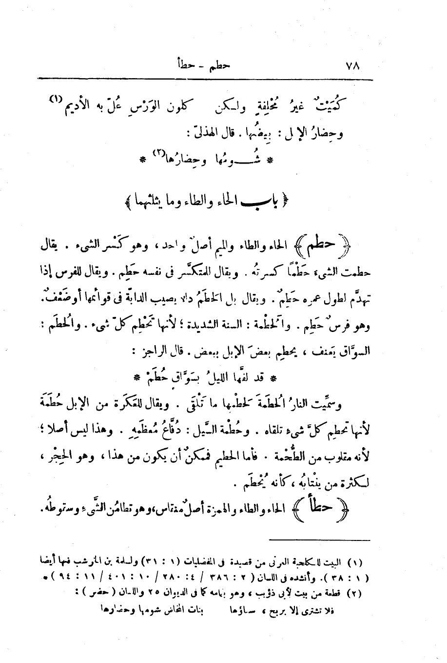 [بَابُ الْحَاءِ وَالطَّاءِ وَمَا يَثْلِثُهُمَا]