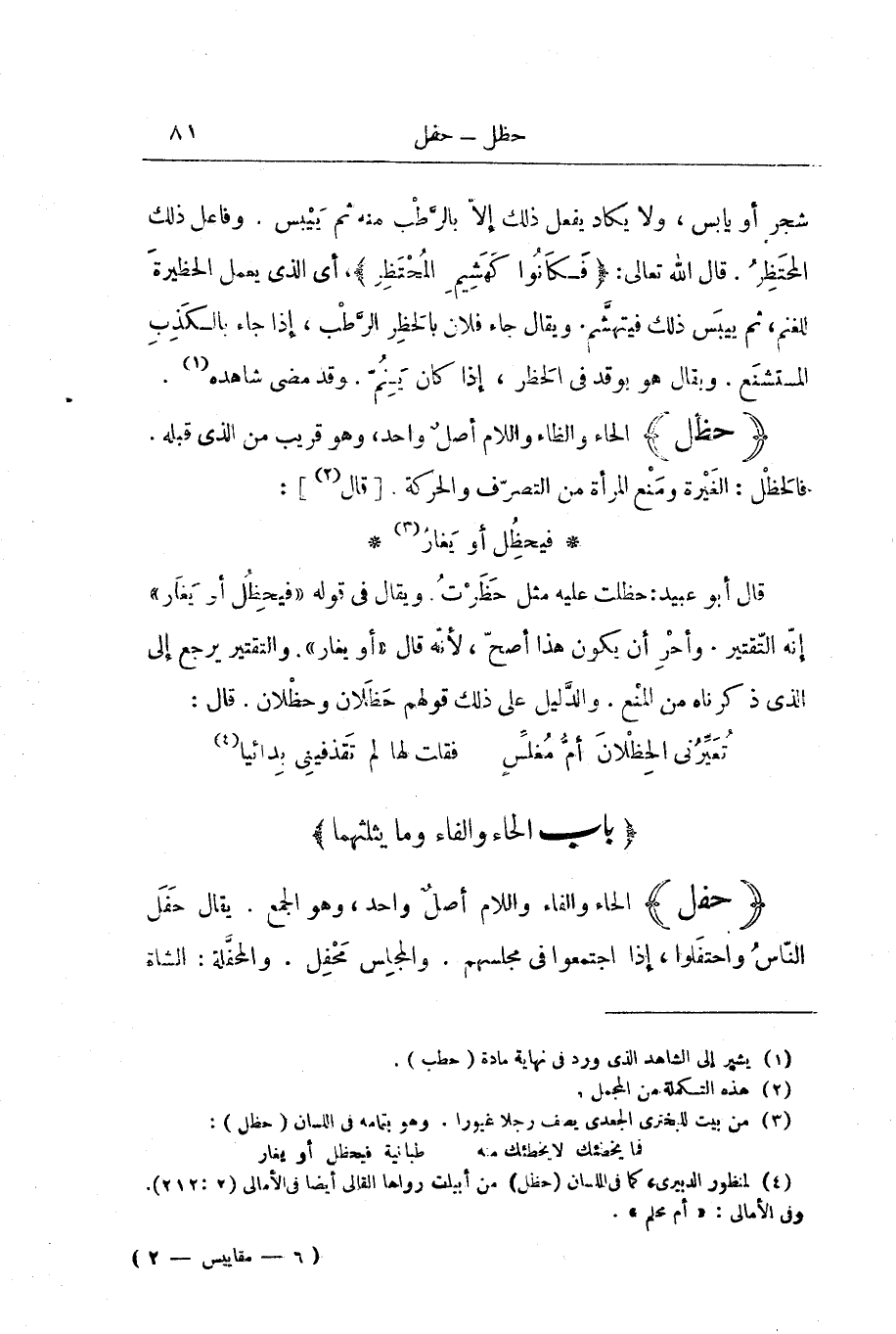[بَابُ الْحَاءِ وَالْفَاءِ وَمَا يَثْلِثُهُمَا]