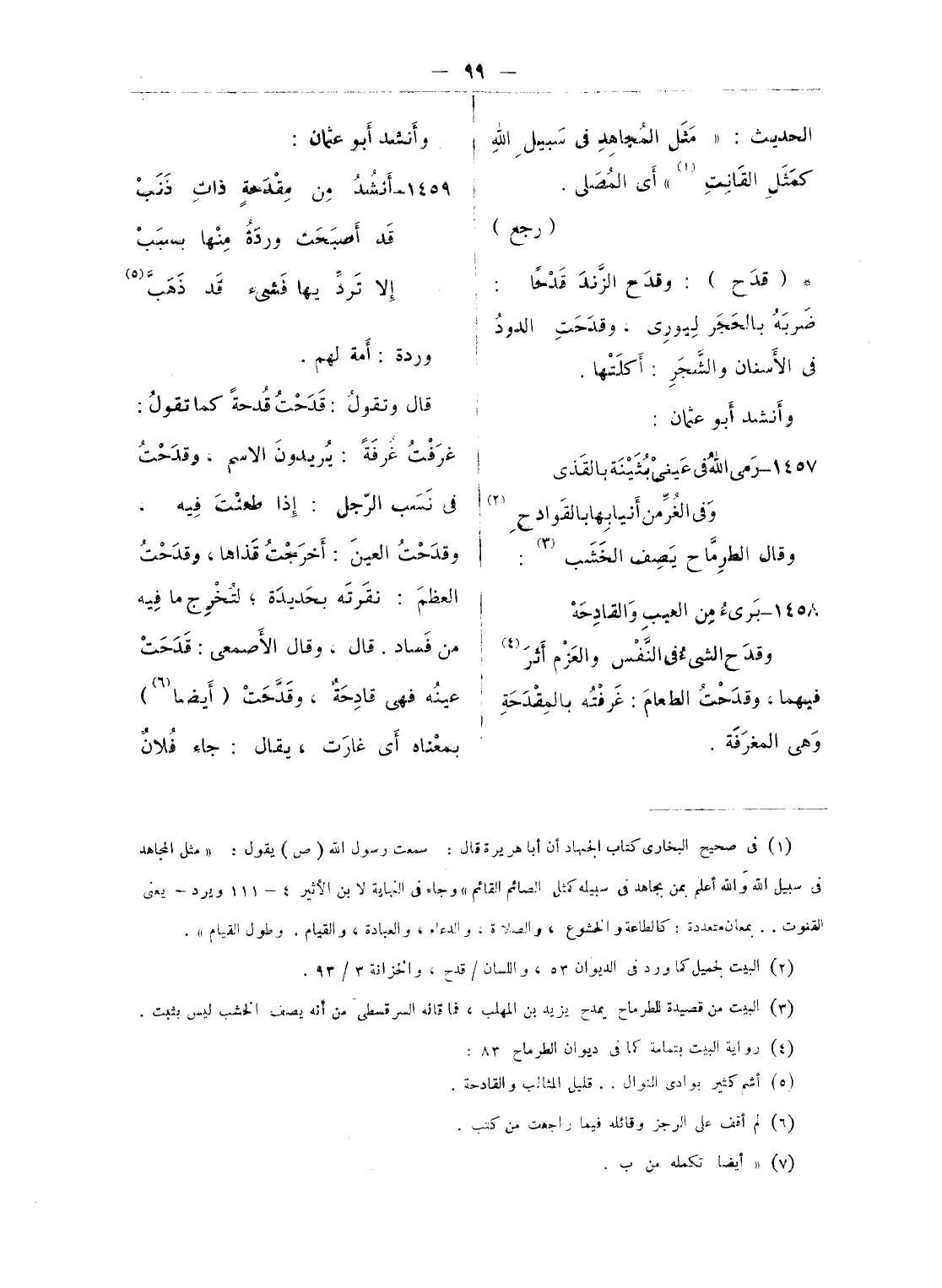 (¬3) هكذا ورد الشاهد فى الجمهرة 1/ 298، واللسان/ قصب من غير نسبة، ولم أقف على قائله فيما راجعت من كتب.
