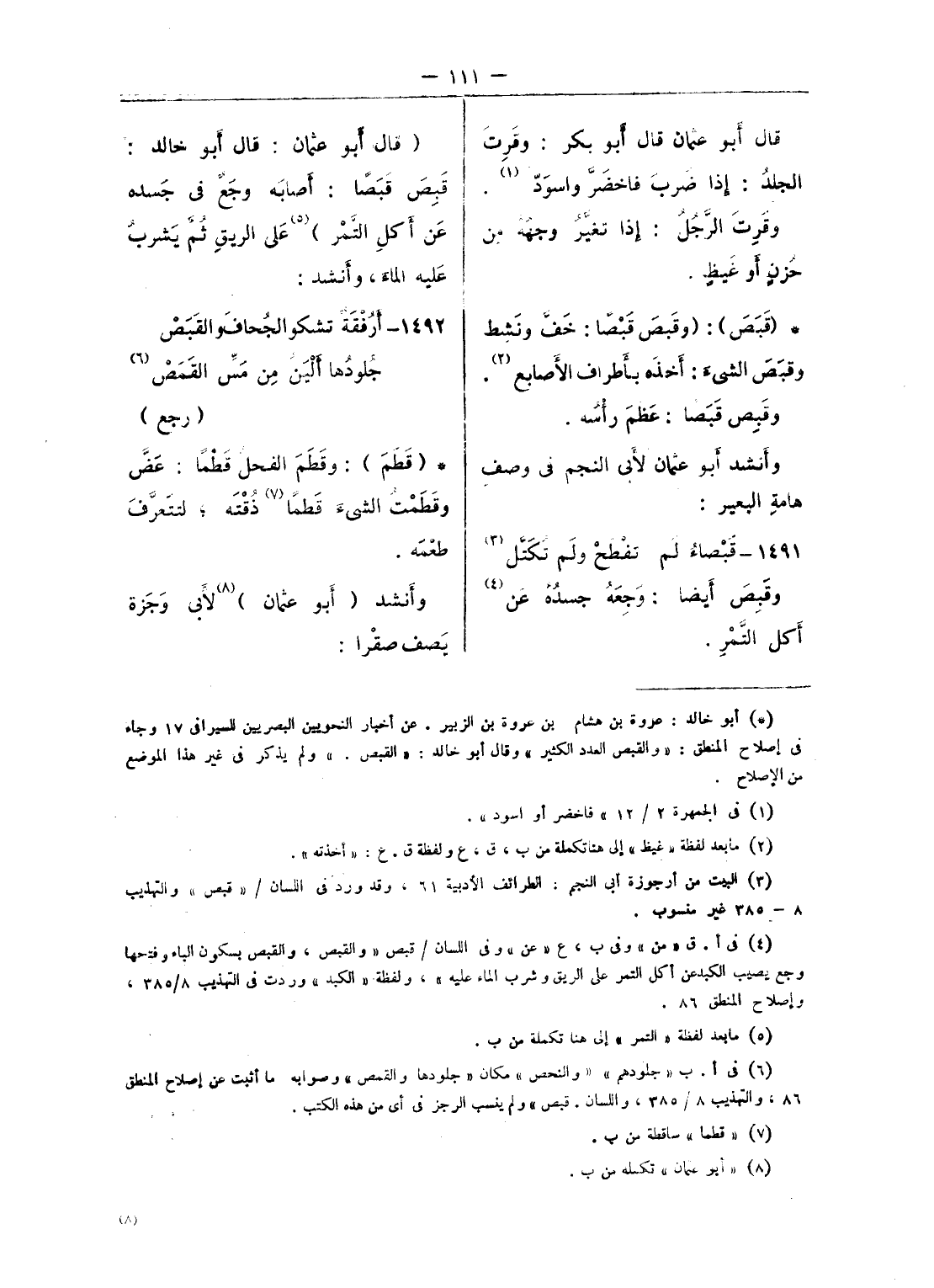 (¬4) ورد الشاهد فى الجمهرة 2/ 48. والتهذيب 9/ 58. واللسان/ «قثم» غير منسوب، ولم أقف على قائله فيما راجعت من كتب.