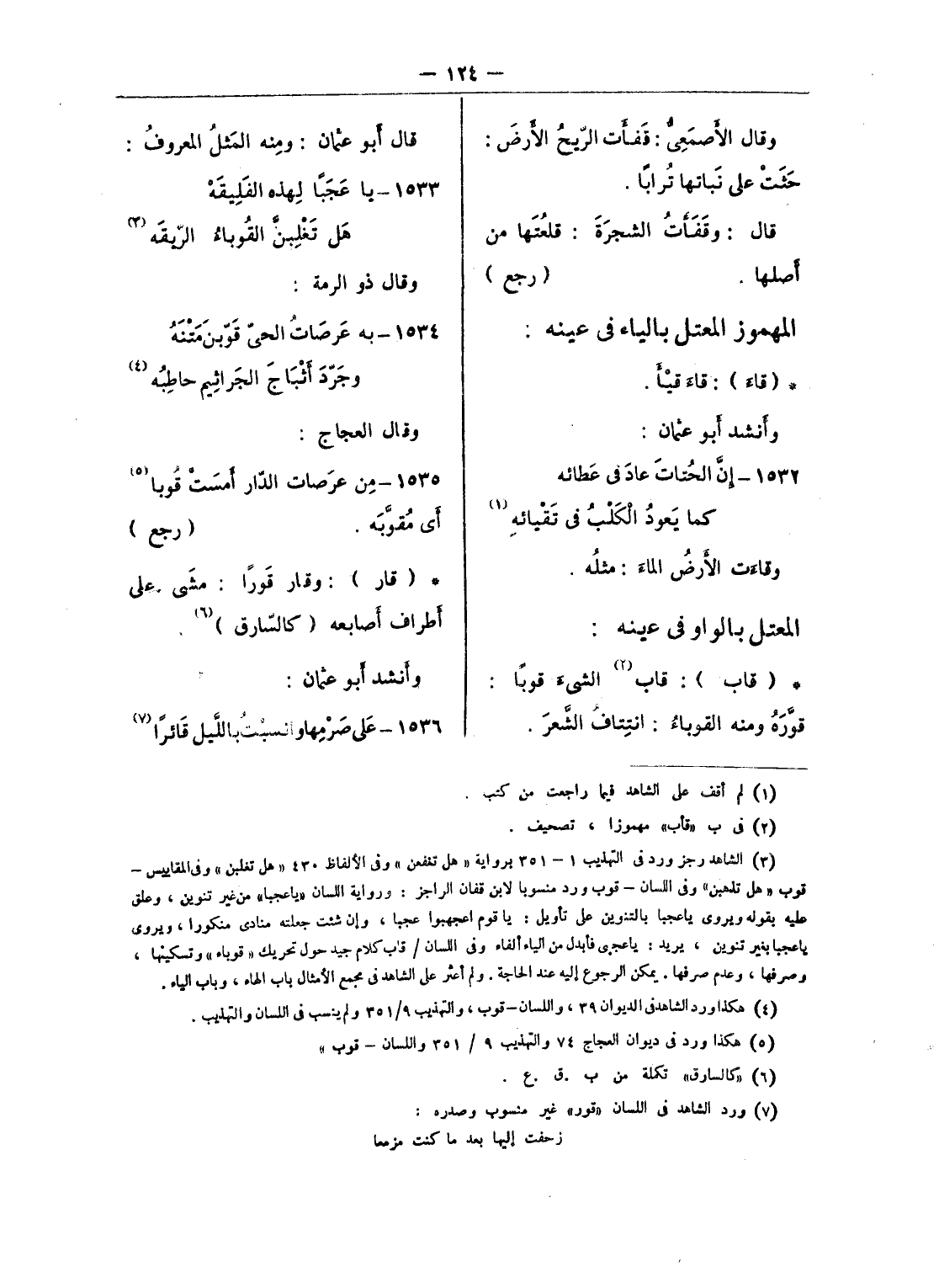 (¬2) وردت الأبيات فى إصلاح المنطق 411 منسوبة لرجل من أهل الحجاز برواية «الحصاص» بالصاد غير المعجمة المشددة بعدها ألف وصاد فى البيت الأول، و «مجروحة» فى البيت الثانى، وقد» فى البيت الرابع، ووردت الأبيات الثلاثة الأولى فى اللسان - قين» برواية «الحصحاص» فى البيت الأول، و «مجروجة» فى البيت الثانى «رأيت مكان «بث» فى البيت الثالث. وأبت الجروح بمعنى: شديد الجروح. والمعنى لا يستقيم مع لفظة «أبت».