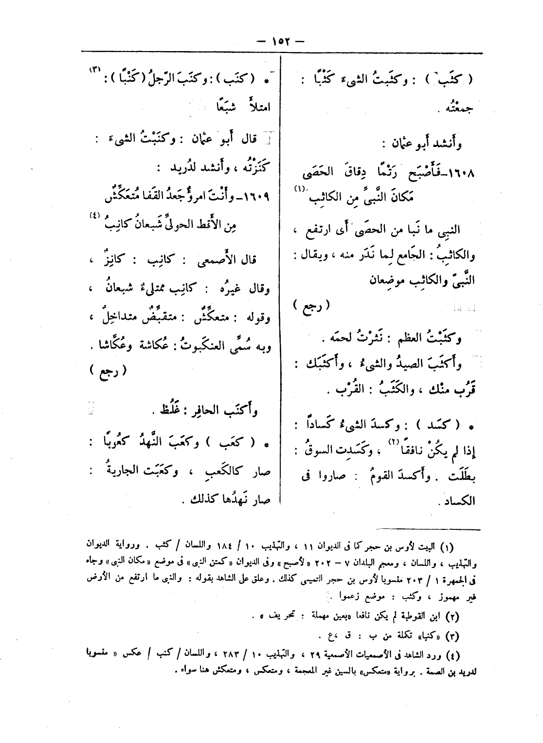 (¬6) ورد فى اللسان/ كلب، والجمهرة 2/ 326 برواية «نجنبه» منسوبا لدكين بن رجاء الفقيمى وورد البيت الثانى فى التهذيب 10/ 258 غير منسوب ونسبه المحقق لدكين كذلك عن الاقتضاب 381، وانظر النص فى الجمهرة 1/ 326.