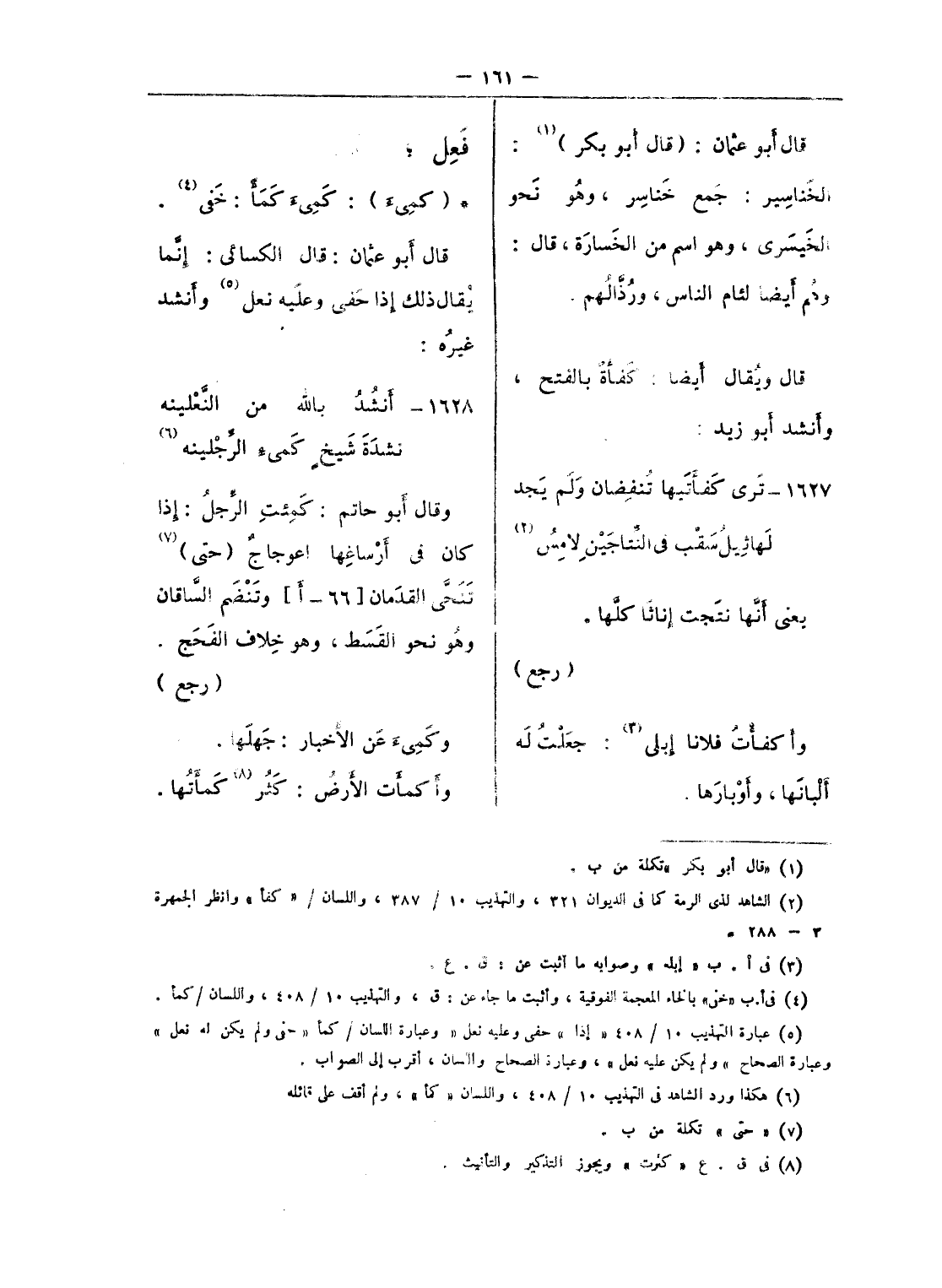 (¬3) «الكبا» بكسر الكاف وضمها، والذى فى الجمهرة 3/ 310 الكساحة» مكان «الكناسة» وهما بمعنى.