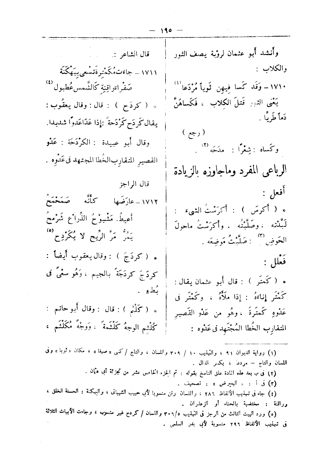 (¬3) جاء الرجز فى ألفاظ ابن السكيت 307، وجمهرة ابن دريد 3/ 348 من غير نسبة برواية: