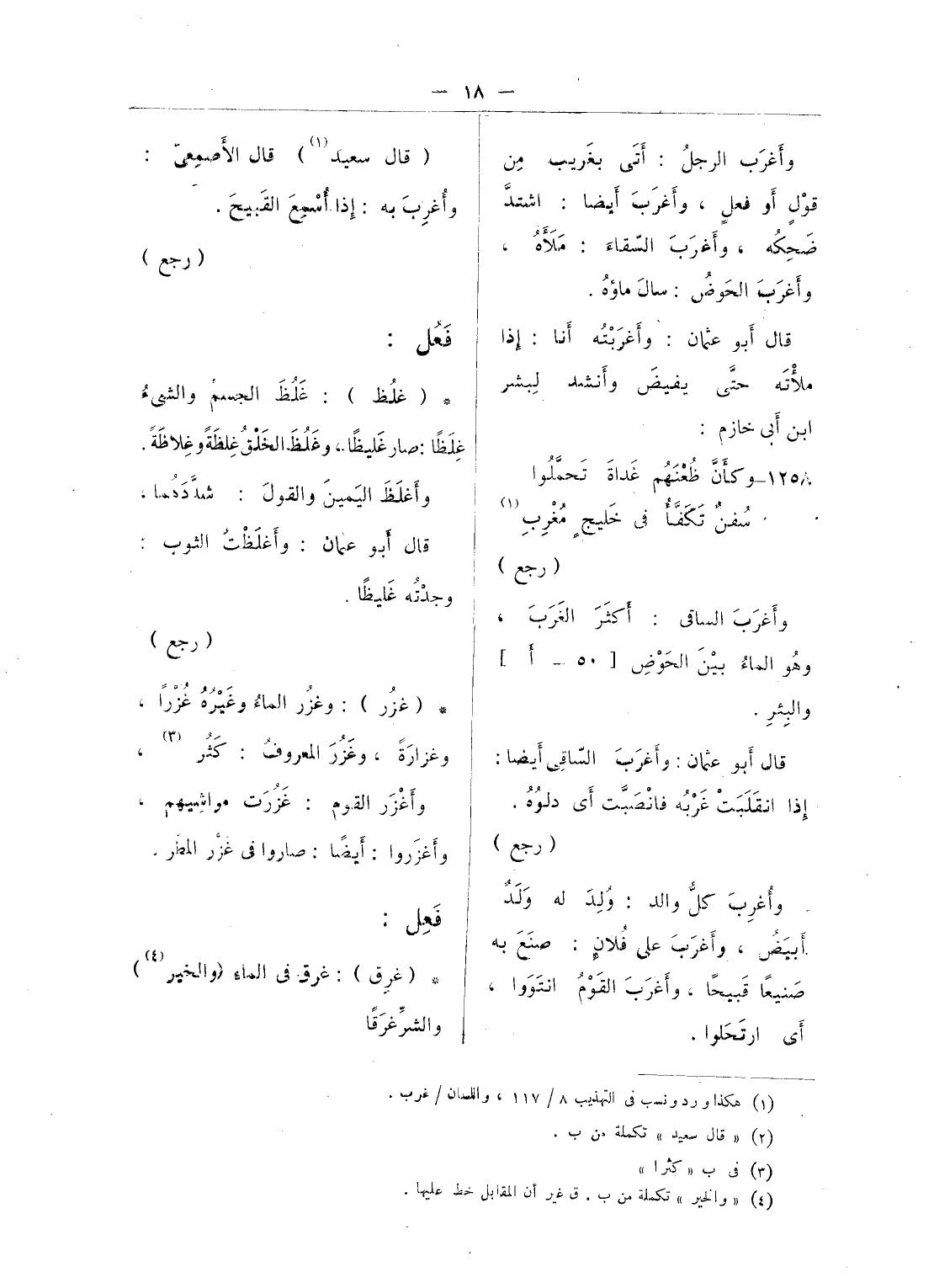 (¬2) ورد الشطر الأول فى التهذيب 8/ 202 غير منسوب، وورد البيت فى الألفاظ 349، واللسان: