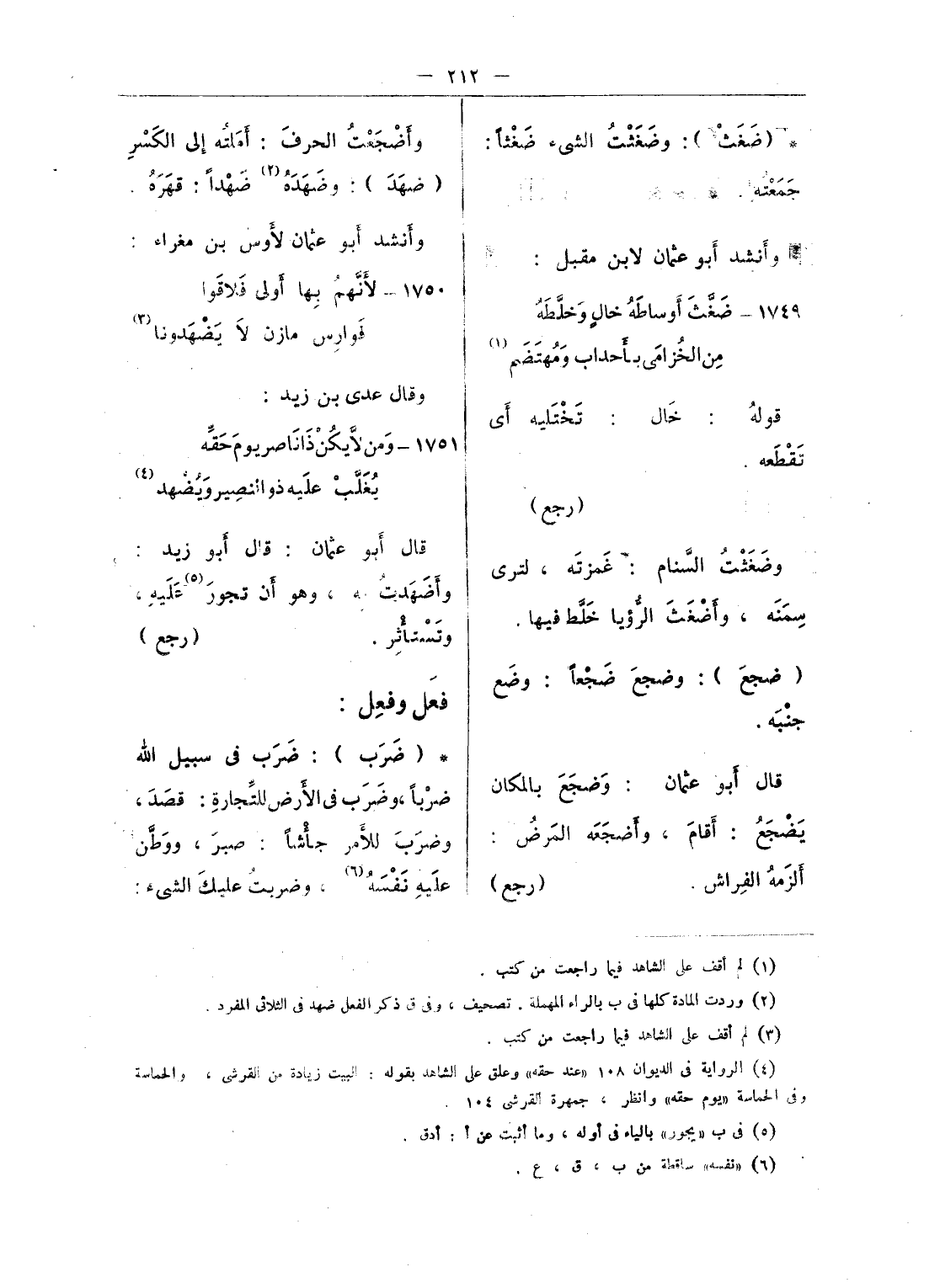 (¬5) ورد البيت فى التهذيب 12 - 6 منسوبا لأبى ذؤيب، وورد فى تهذيب الألفاظ 355 واللسان، والتاج «ضمه» غير منسوب، ولم أجده فى شعر أبى ذؤيب الهذلى.