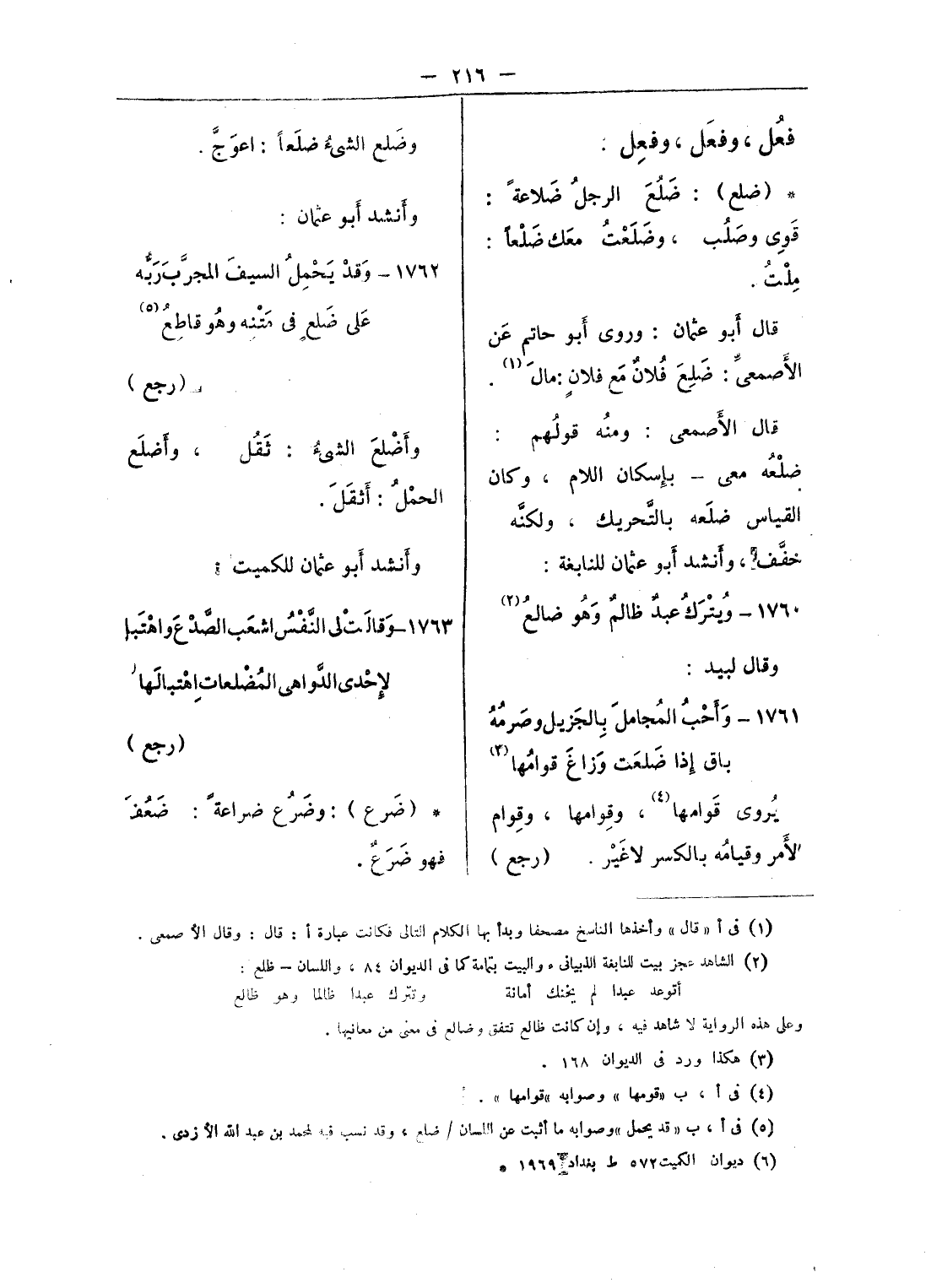 (¬5) «ضأله» بالهمز وفى التهذيب 12/ 64: والضال - غير مهموز، هو السدر البرى، والواحدة ضالة «وجاء فى النبات والشجر للأصمعى 47/ 48 ومن شجر الحجاز: الغرقد والسدر، فما كان بريا فهو ضال وما كان ينبت فى الأنهار فهو عبرى. بضم العين.