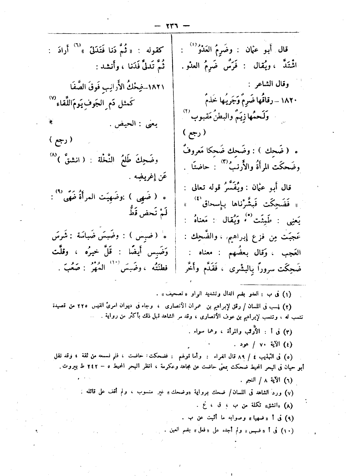 (¬4) هكذا ورد الشاهد فى تهذيب الألفاظ 649 واللسان - ضوز، وورد فى الجمهرة 3 - 4 برواية «وما مثل لون الأرجوان» من غير نسبة.