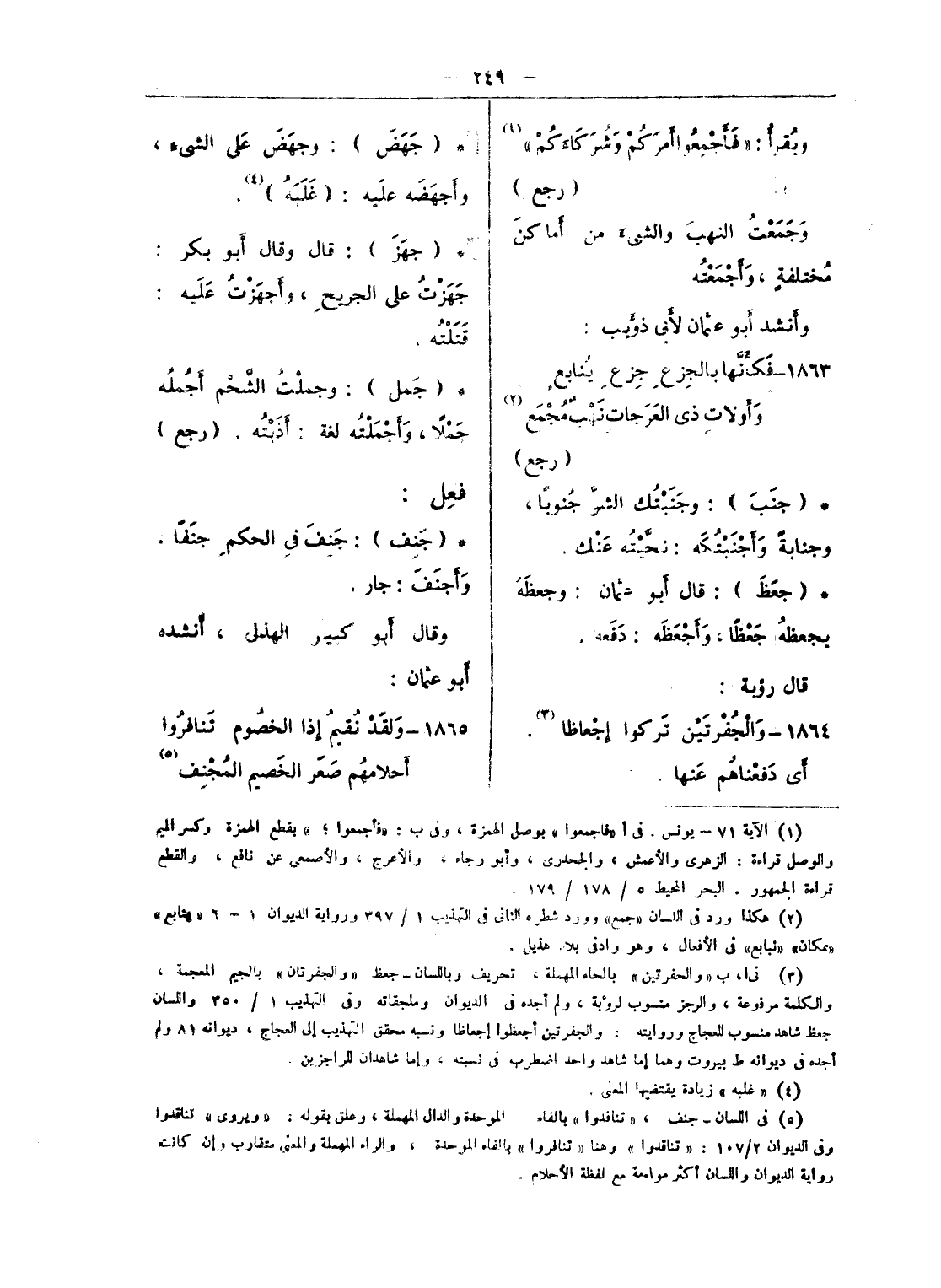 (¬5) الذى وجدته فى كتاب الزجاج 8، 9 ط القاهرة 1368 هـ: «وجاز الرجل الوادى وأجازه: إذا قطعه ونفذه، وقال الأصمعى جزته: نفذته، وأجزته قطعته .. ويقال: جاز الرجل: إذا استقى الماء، وأجاز: