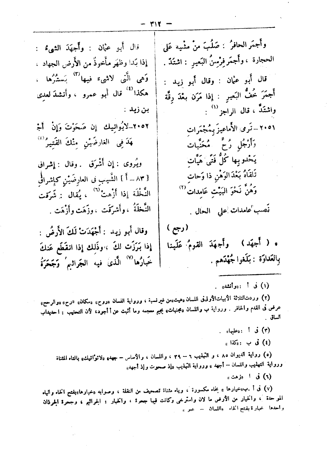 (¬6) ورد الرجز فى التهذيب 11 - 241 واللسان - جرفس من غير نسبة برواية «أريسا» «مكان» «أصيسا» واءعيس» الذى يخالط بياضه شقرة.