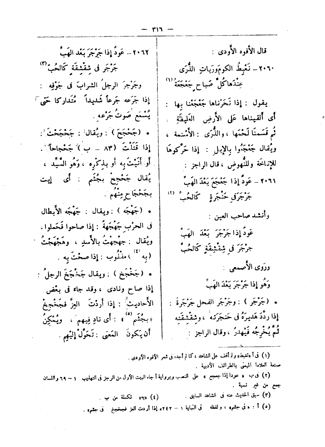 (¬1) هكذا جاء الرجز فى تهذيب الألفاظ 310، وجاء فى نفس المصدر 182 برواية «هربا وجنصا فى الثانى وفرقا وخليصا فى الثالث منسوبا لعبيد المرى.