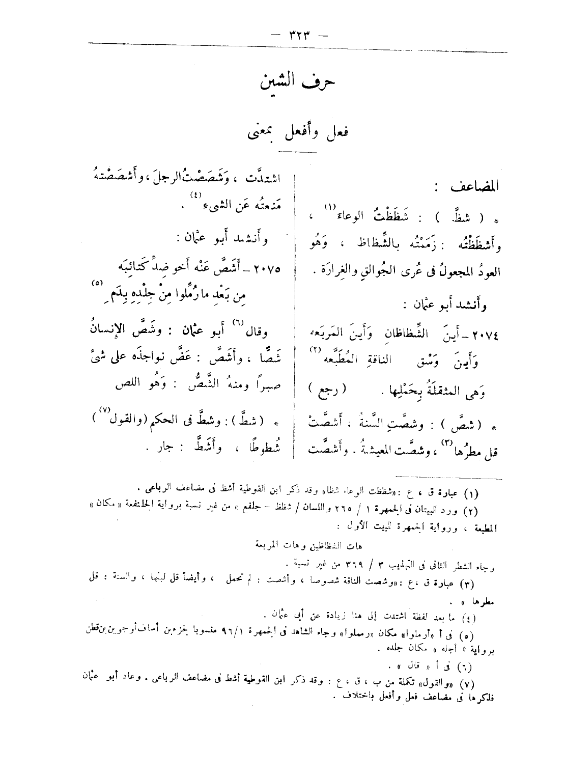 وتتفق رواية اللسان الأولى شرر» مع رواية أبى عثمان ثم صححه نقلا عن العلامه ابن برى إلى رواية الديوان، وعلل الرواية الأولى أن العجاج حرك الشين من «الشبر» للضرورة.