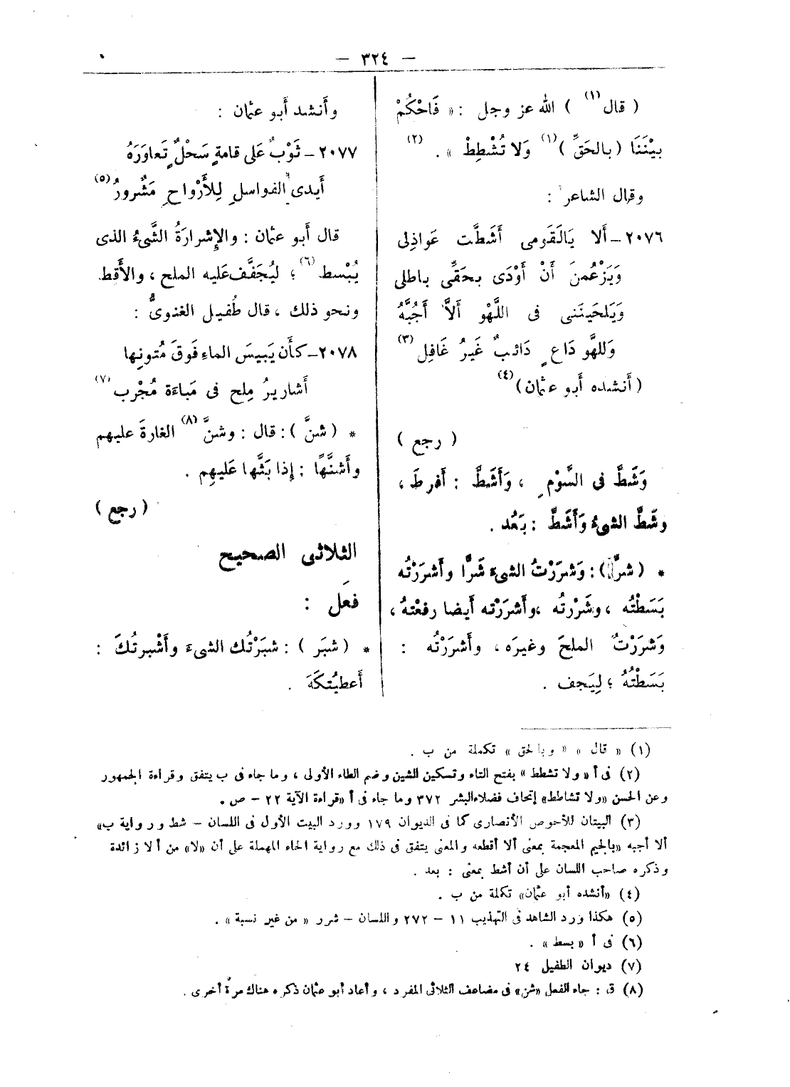 وقد ورد الشاهد فى التنبيه على حدوث التصحيف 159 منسوبا لطرفة برواية «منى» مكان «منه» وورد فى اللسان - شكم غير منسوب برواية؛: «جزل العطاء «مكان» منه الثواب «وجاء برواية اللسان فى الجمهرة 3 - 68 منسوبا لطرفة وحرف النقلة فى ب «عاجل» إلى جاعل وجاء