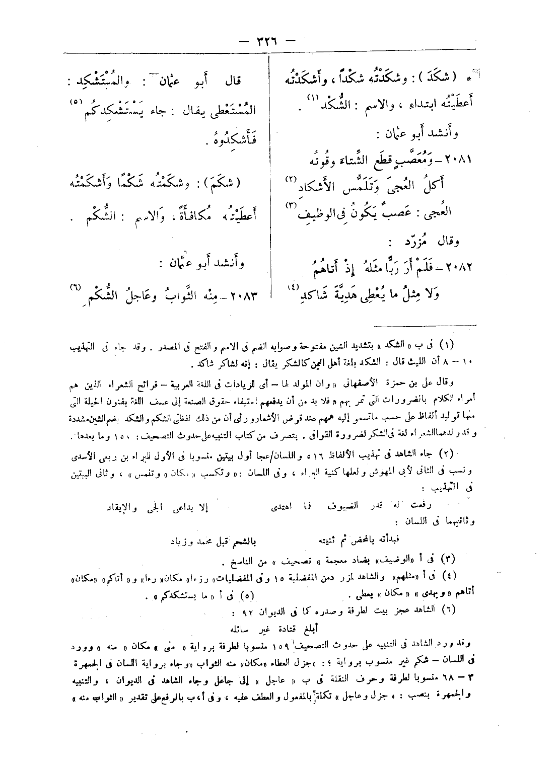 (¬3) فى ق، ع: «وشكرت الشجرة شكرا. وقد أعاد ابن القوطية ذكر هذه المادة فى بناء فعل وفعل من بفتح العين وكسرها من الثلاثى الصحيح فى باب الثلاثى المفرد.