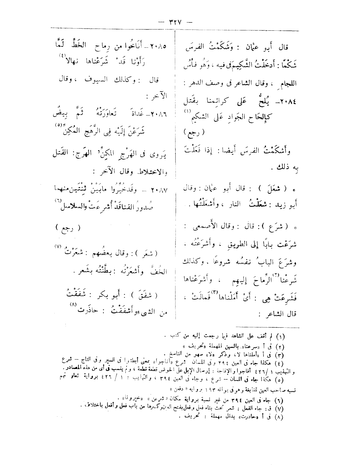 (¬4) الشاهد للبيد كما فى الديوان 132 من قصيدة يرثى النعمان بن المنذر واللسان دبر» وقد ورد مع شاهد آخر يتفق معه فى روايته ويخالفه فى لفظة» بأبيض» التى وضعت مكان «بأشهب وينسب لزيد الخيل.