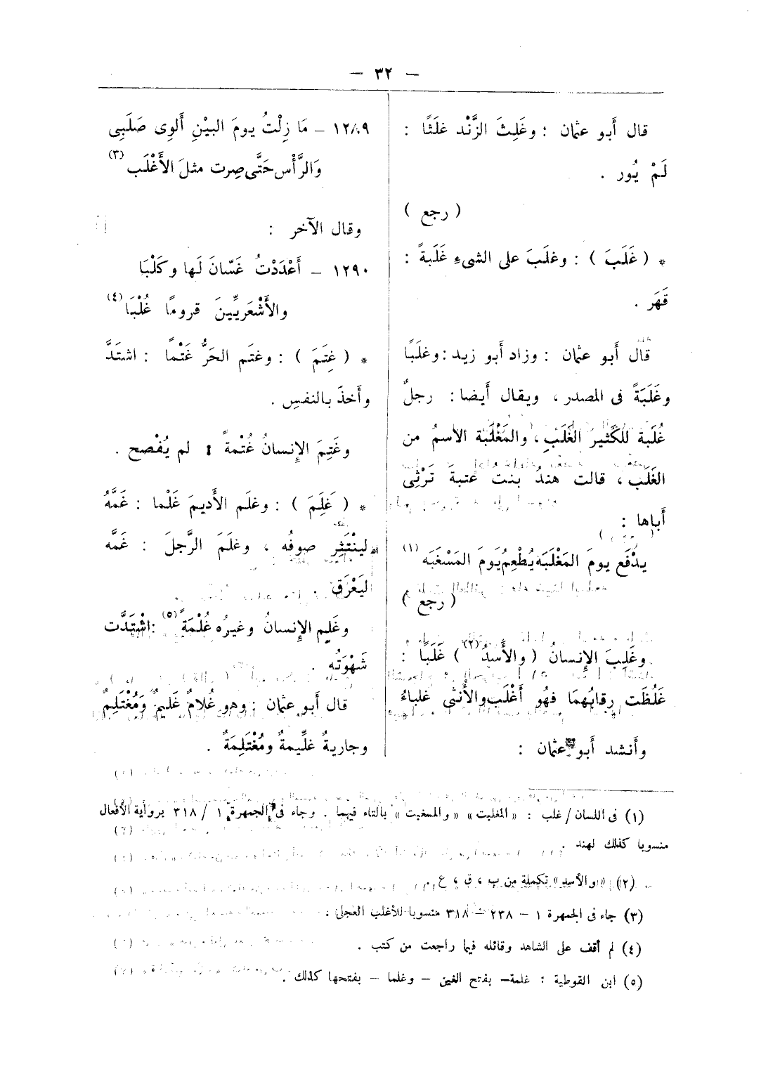 (¬4) ورد الشاهد فى نوادر أبى زيد 52 واللسان/ غثم منسوبا لرجل من فزارة، وورد البيت الأول فى التهذيب 8/ 96 غير منسوب برواية «رأسى» مكان «شيبا».