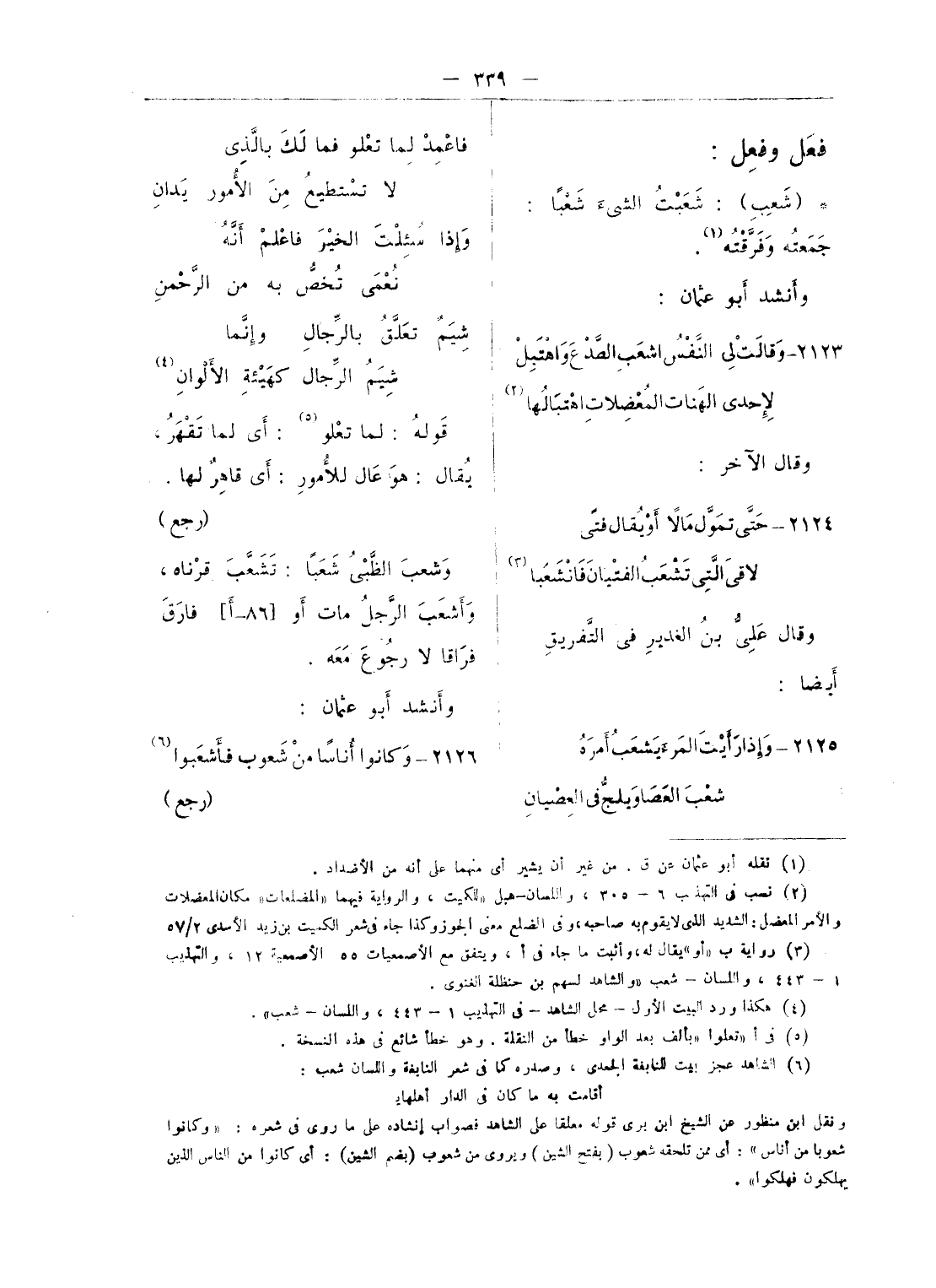 (¬2) الشعر والشعراء 296 «القراف - وتخلط «واللسان - شمس «القراف/ تخلط بالتشديد «وفى أ «تخلط» بتشديد اللام مثل اللسان، وما جاء فى ب يتفق ورواية ديوان النابغة الجعدى 81 غير أن لفظة تخلط» جاءت فى الديوان بالحاء المهملة خطأ فى الطبع.