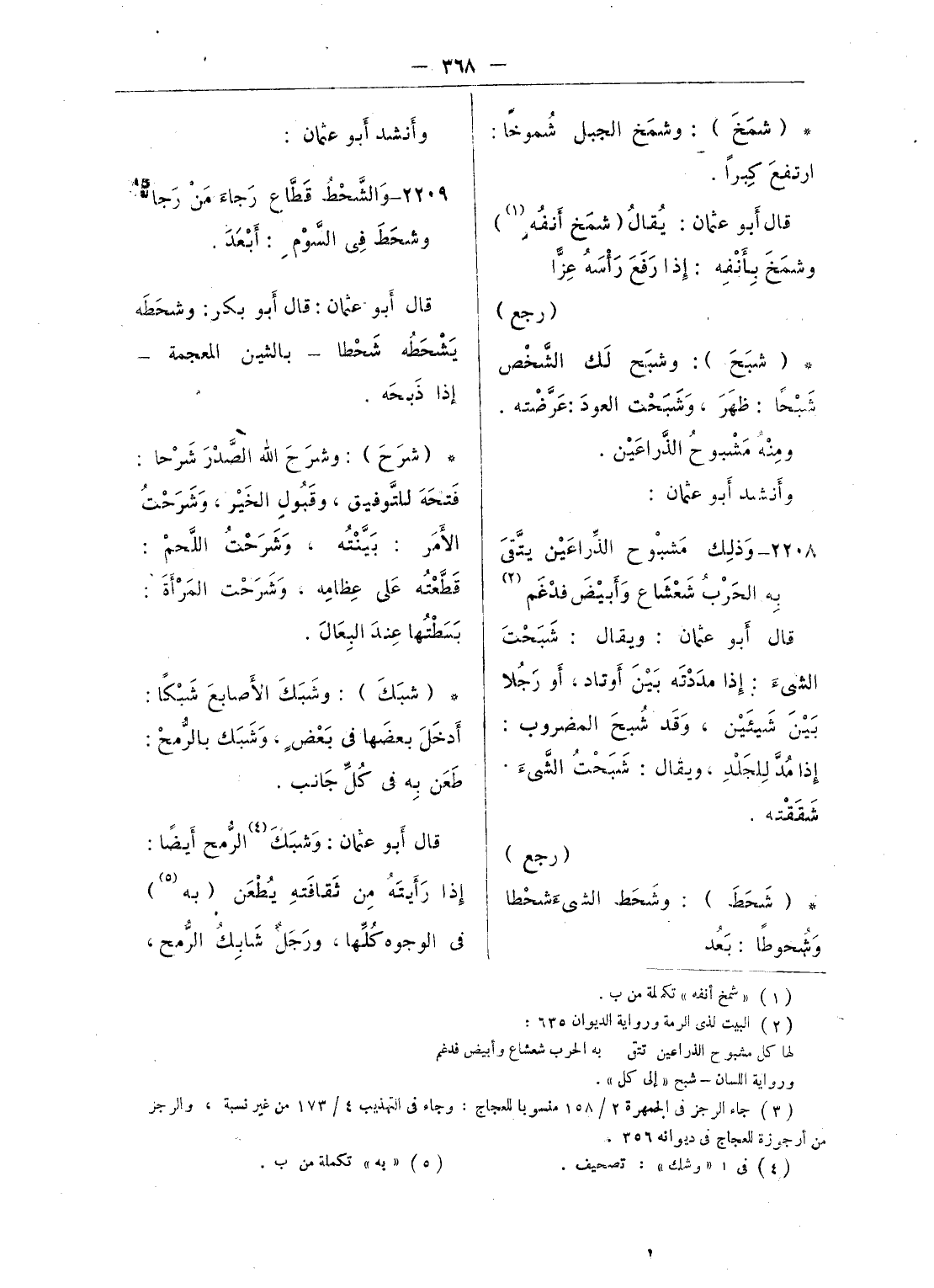 قال أبو عثمان: هذه الخياطة مثل البشك (¬5)، قال: ويقال: تركت فلانا وقد شصر بصره يشصر شصورا، وهو أن تنقلب العين (¬6) عند نزول الموت، وقد شخص بصره، ويقال: شصرت