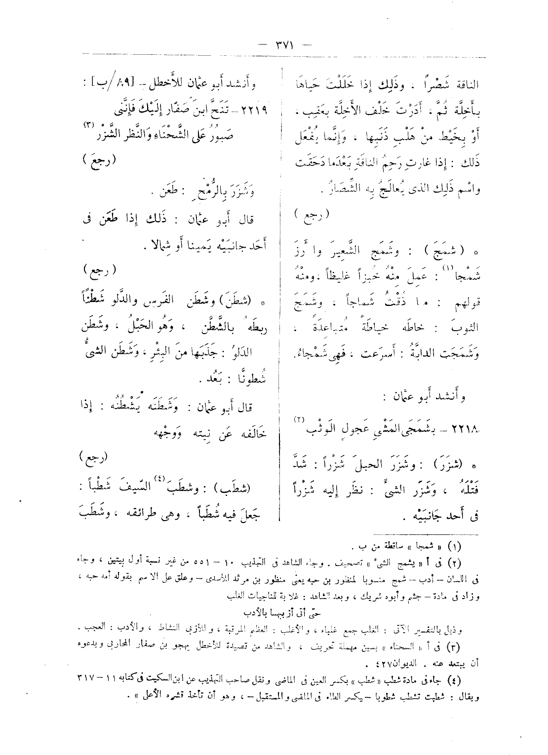 (¬6) جاء الشاهد فى تهذيب الألفاظ 36 سادس ثمانية أبيات من الرجز لجندل الطهوى، وجاء الشاهد فى اللسان - شفن منسوبا لجندل بن المثنى الحارثى.