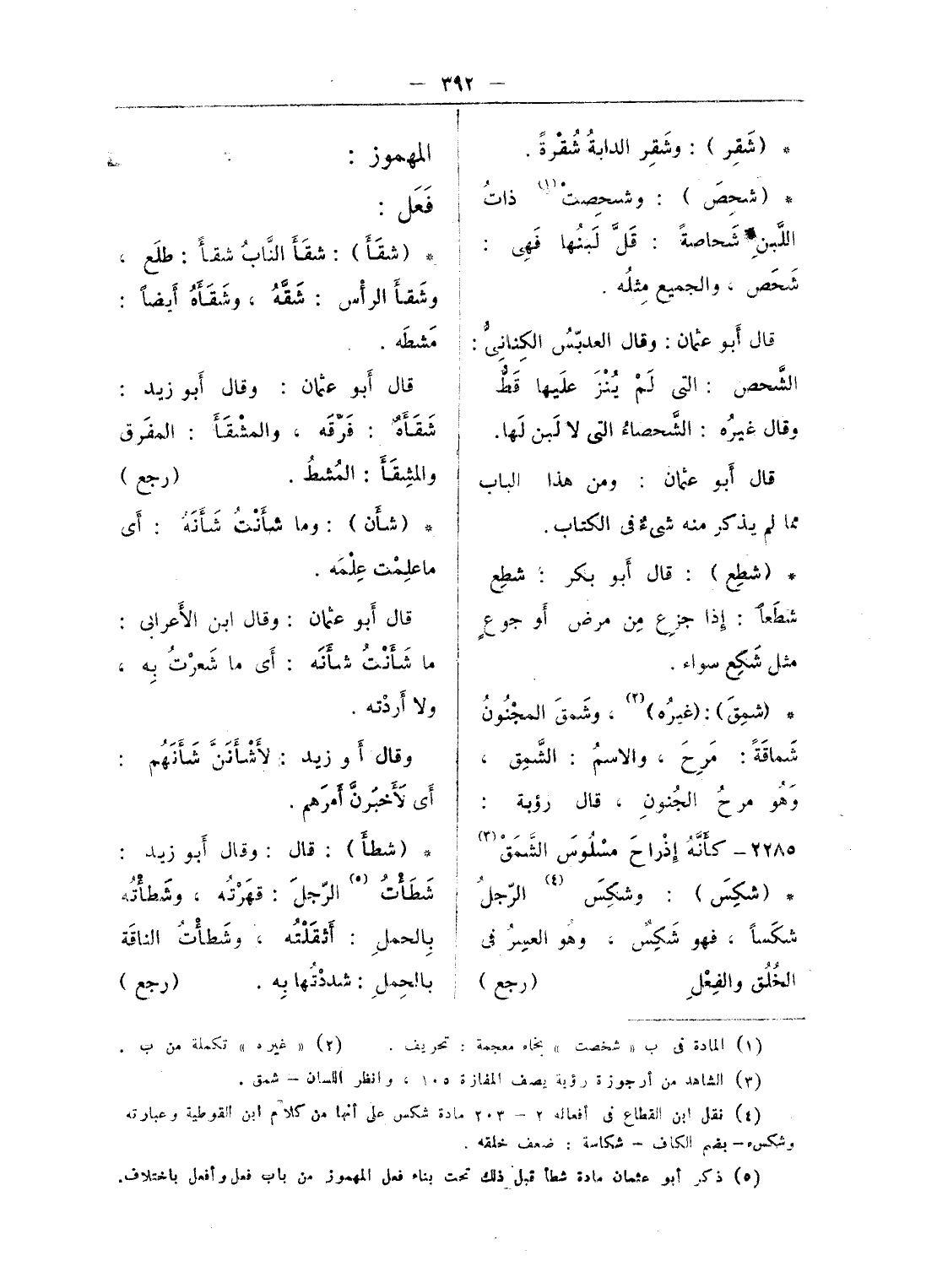 قال أبو عثمان: وقال النّضر: شنئت له حقّه: أعطيته، تقول: اشنأ (¬3) لنا حقّنا - أى: أعطناه.