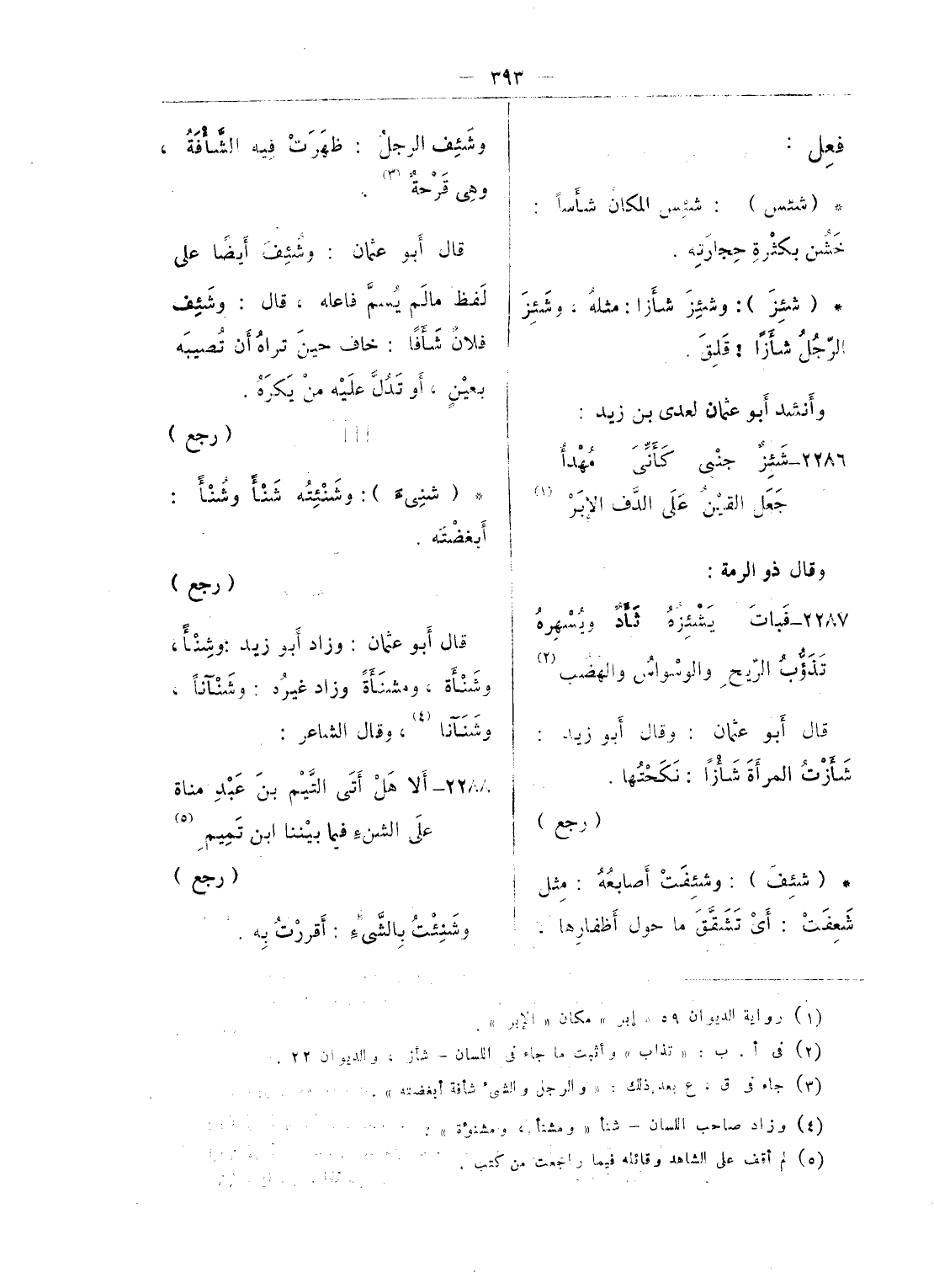 (¬4) جاء فى أفعال ابن القوطية وبالياء فى عينه معتلا على فعل بفتح العين وسالما وعلى فعل بكسر العين وذكر تحت البناء الهواد شاط - شام - شان