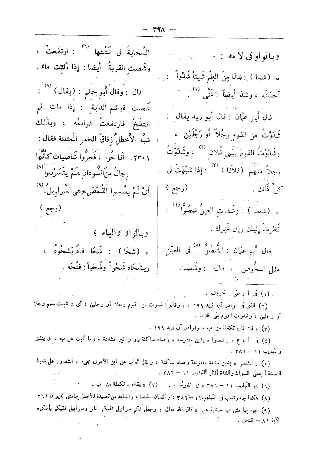 (¬3) نقل صاحب الجمهرة 1/ 96، والتهذيب 11/ 270 مجى شظ وأشظ بمعنى أنعظ، قال ابن دريد: شظ وأشظ إذا أنعظ، وابن دريد من مصادر أبى عثمان الرئيسة.