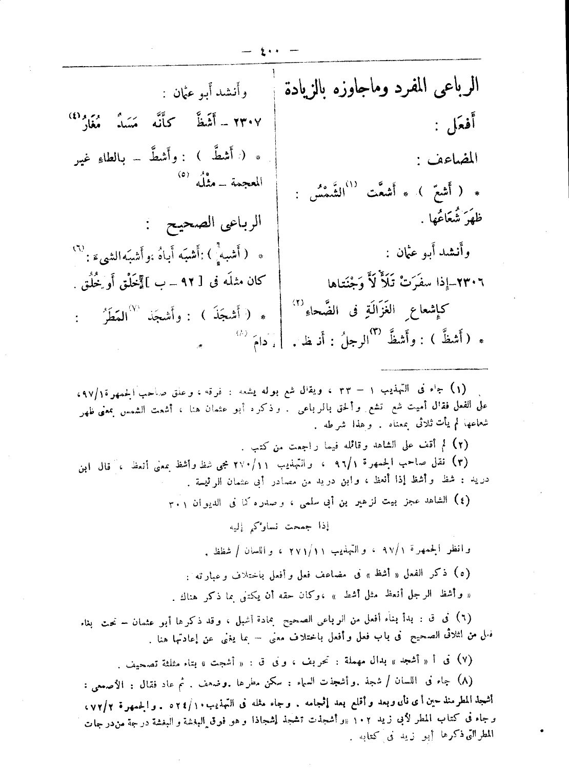 (¬2) ق: جاء فى نهاية هذا البناء الفعل: أشاص وعبارته: «وأشاص النخل: فسد ثمره، وهو الشيصاء وقد ذكره أبو عثمان تحت بناء فعل بالواو سالما وفعل معتلا «من الثلاثى فى باب فعل وأفعل باختلاف معنى