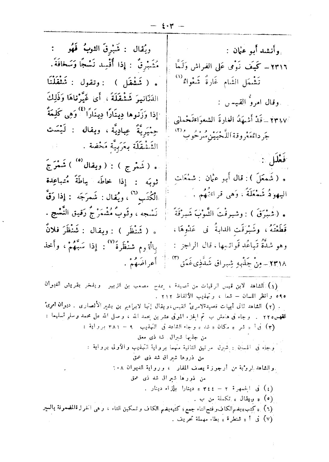 (¬4) فى ب «مشلشل؛» بفتح الشين الثانية، وصوابه الكسر، والشاهد ثانى أبيات أول قصيدة فى ديوان ذى الرمة. الديوان 1، وانظر التهذيب 11/ 277.