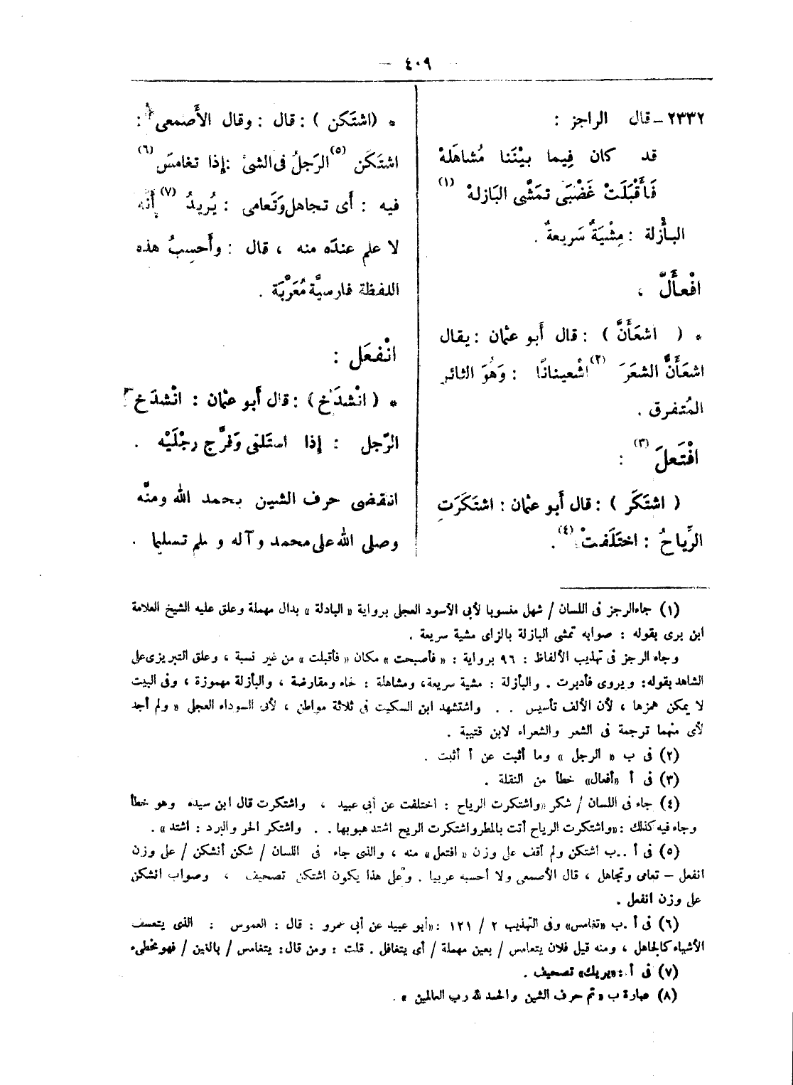 (¬4) هكذا جاء فى ديوان الأخطل من قصيدة يمدح يزيد بن معاوية. الديوان 97، وفى ديوان حسان 39 البيت الآتى من قصيدة يهجو مسافع بن عياض بن صخر بن عامر: