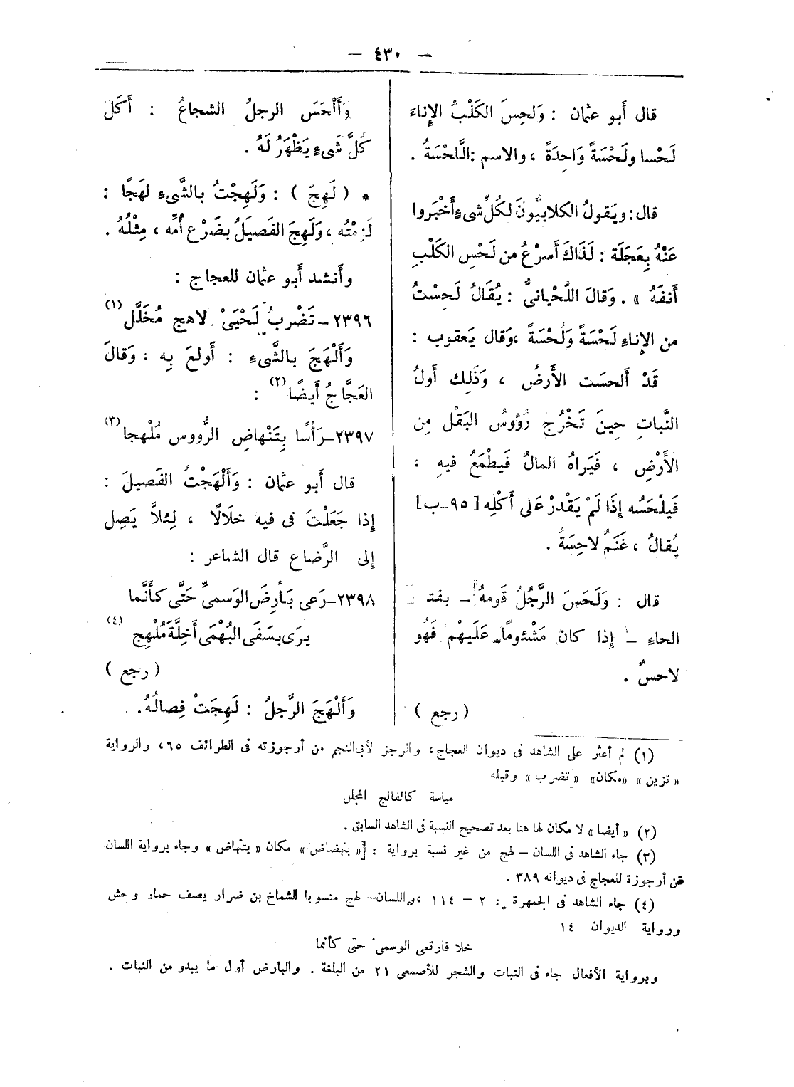 من غير من نسبة، وجاء فى تهذيب الألفاظ 44 برواية «لو» وفى المصدر نفسه 46 جاء «منسوبا للعجاج ورواية الديوان 17 تتفق ورواية الأفعال.