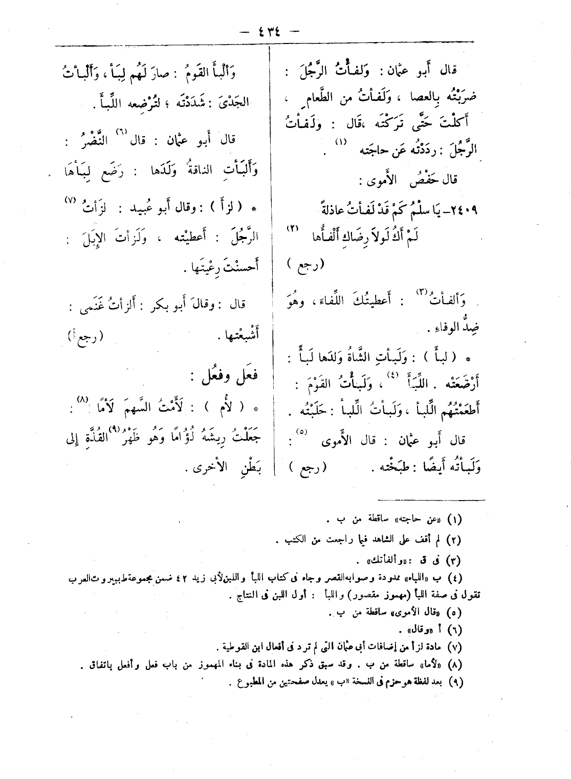 (¬2) ذكر أبو عثمان مادة: لاص قبل ذلك تحت بناء فعل معتل العين بالياء من باب فعل وأفعل باتفاق.