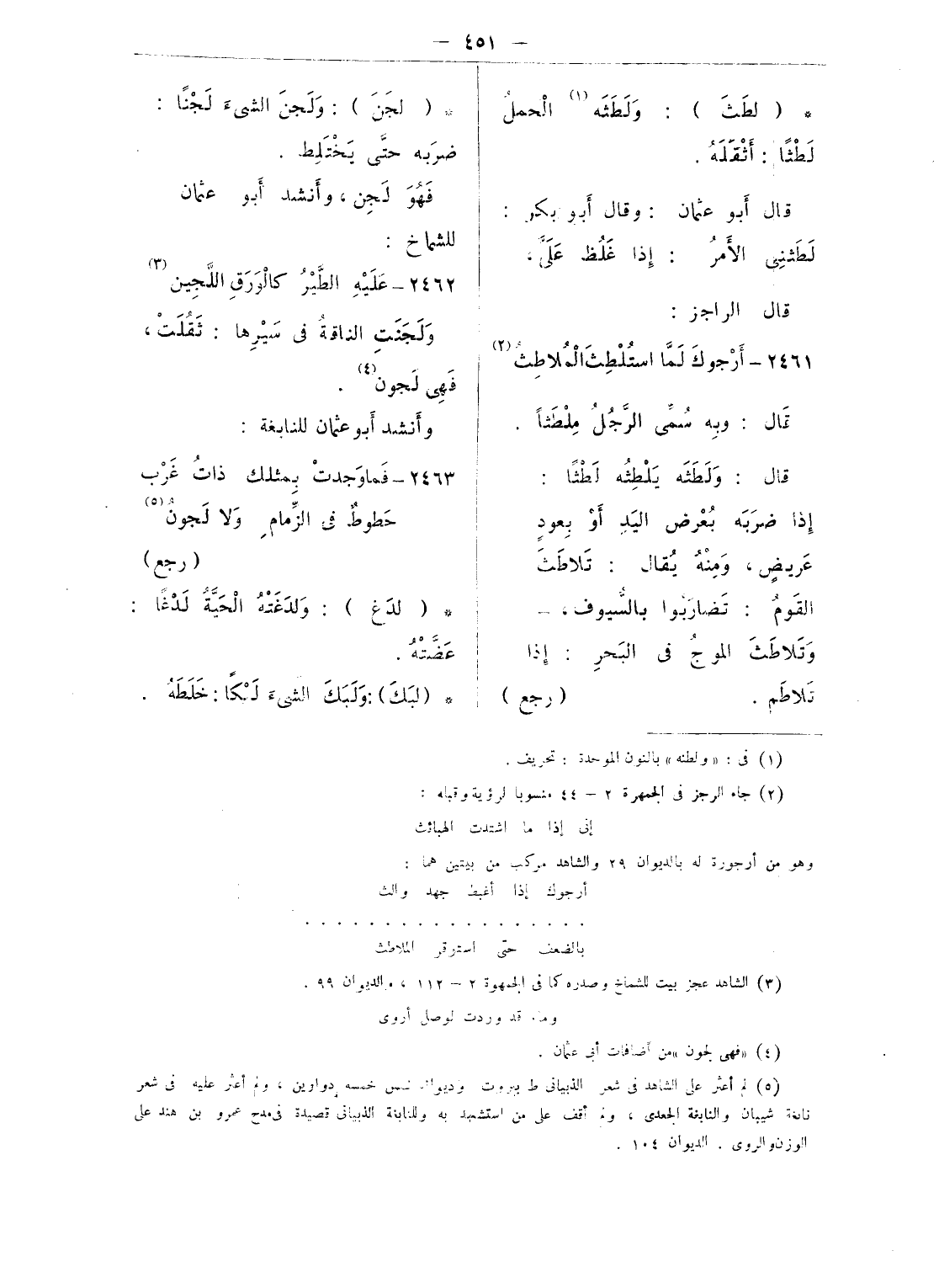 (¬4) «قال أبو عثمان» تكرار لا يحتاج إليه المعنى، أو نقل عن عالم آخر ووقع الخطأ فى فعل النقلة وجاء فى نوادر أدبى زيد 215» وقالوا إذا سألك الرجل فأعطيته ثم سألك، فأكثر عليك، قد لجذنى يلجذنى لجذا «ونقله عنه أبو منصور فى التهذيب 11 - 13 وعلى هذا أرجح أن يكون صوابها «قال أبو زيد» وقد أكثر من النقل عنه.