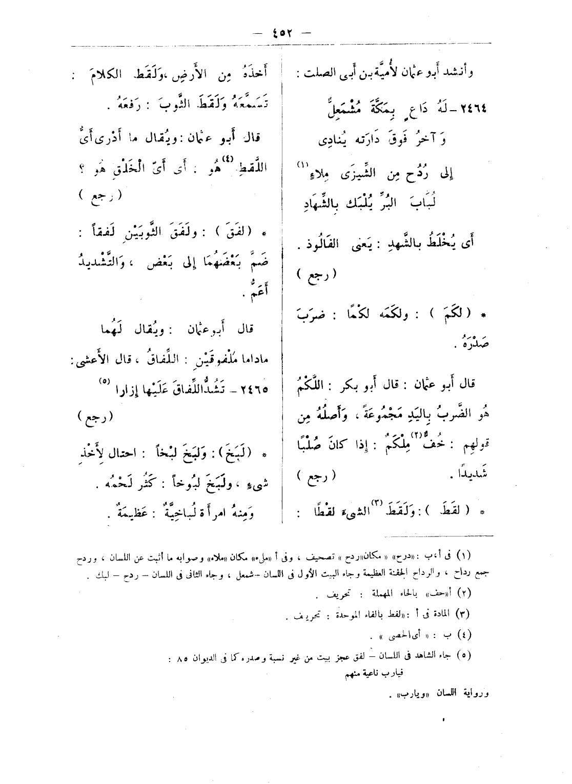 (¬2) أ: «يكلح «تصحيف، وجاء الرجز فى الجمهرة 2 - 185، والتهذيب 4 - 102، وفى اللسان - لكح «يلكحه» «مردفا»، ولم ينسب فى أى من هذه الكتب.