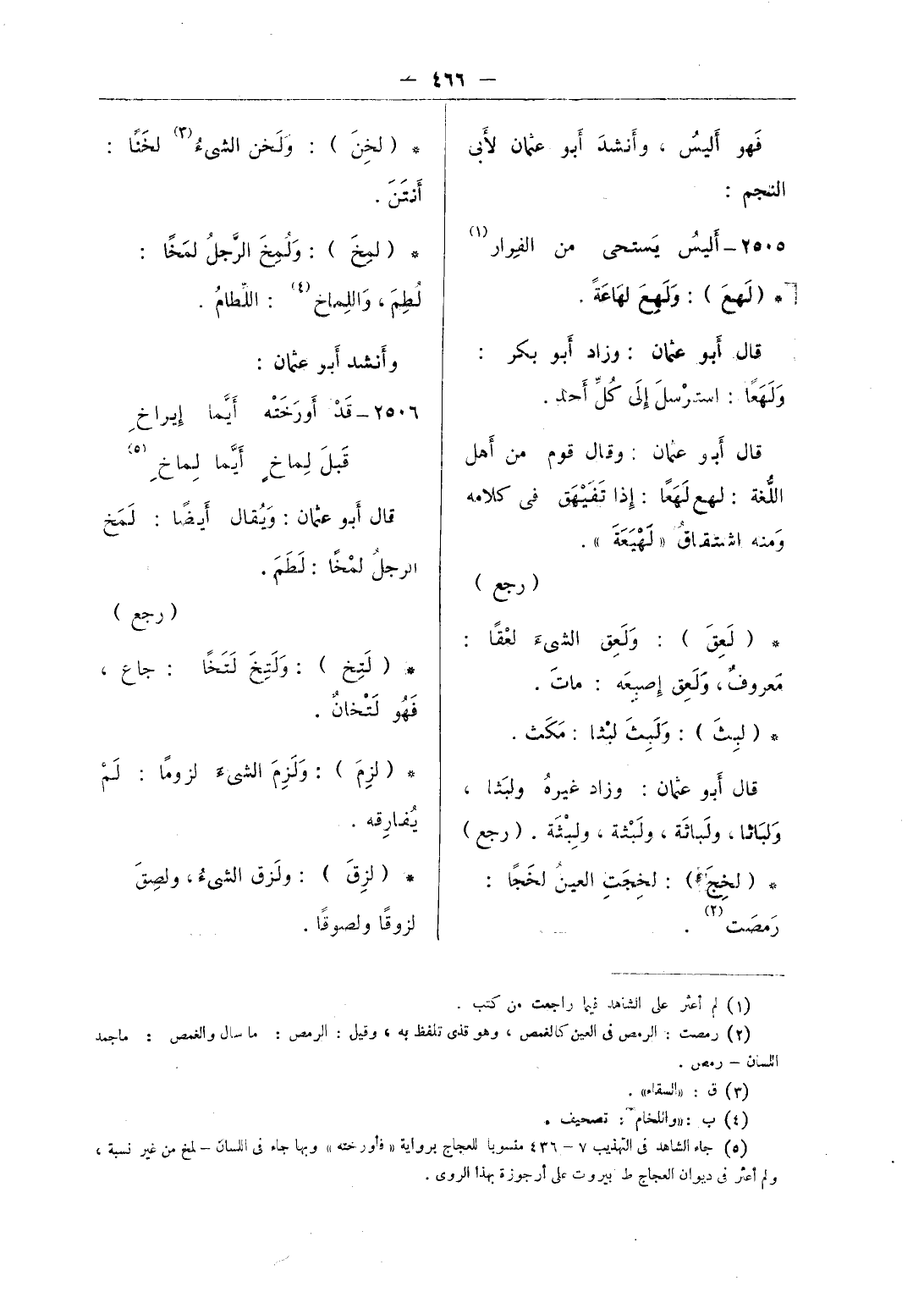 (¬1) النقل هنا عن الليث، وقد نقله الأزهرى فى التهذيب 4 - 148، منسوبا إلى الليث مع تصرف وقد لاحظت أنه كثيرا ما يستخدم عبارة وقال غيره عند ما ينقل عن الليث، ولعل ذلك راجع إلى ما دار من كلام كثير حول كتاب العين ومؤلفه.