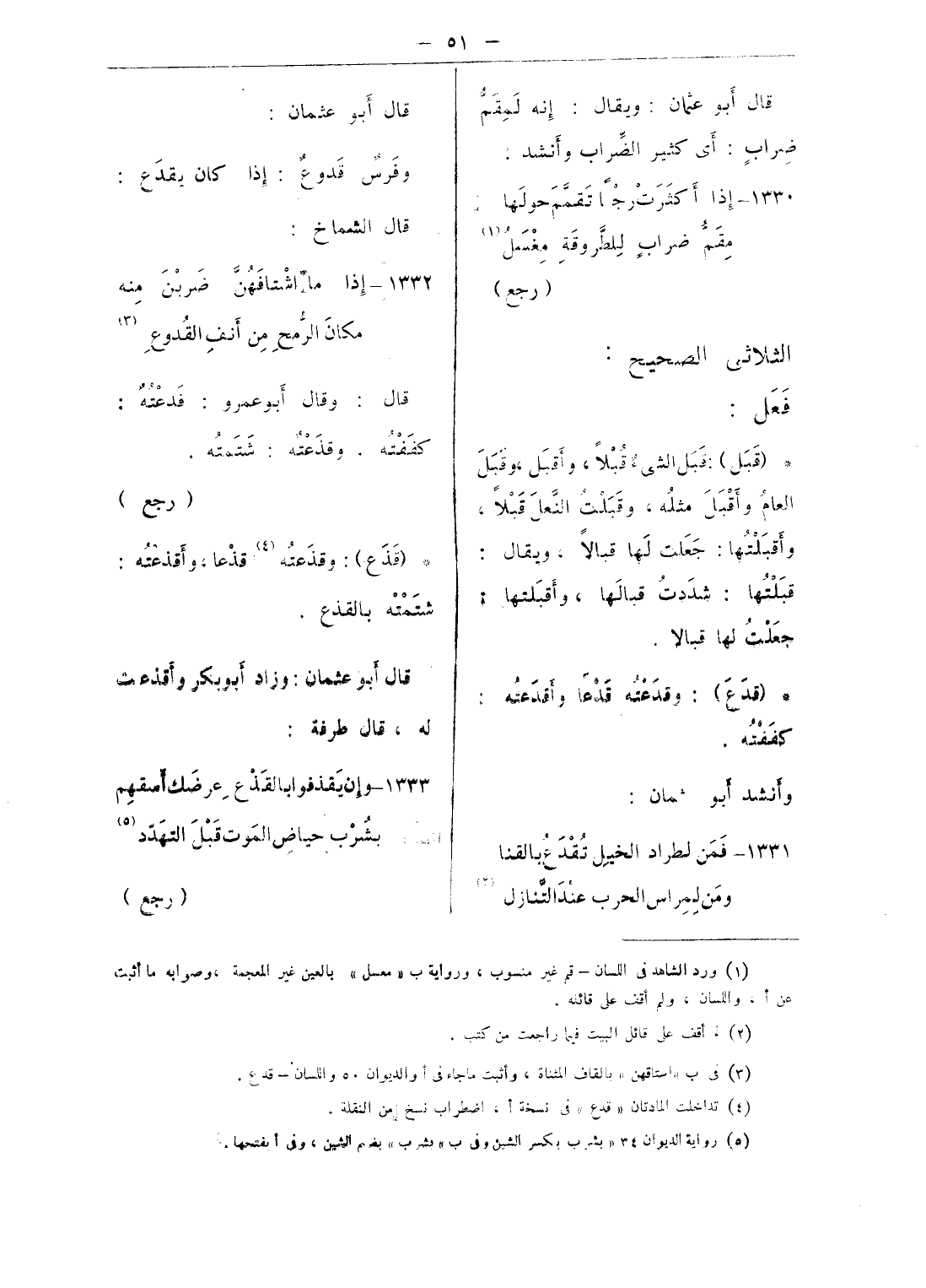 الديوان 182 وانظر التهذيب 8 - 369 واللسان/ قلص.