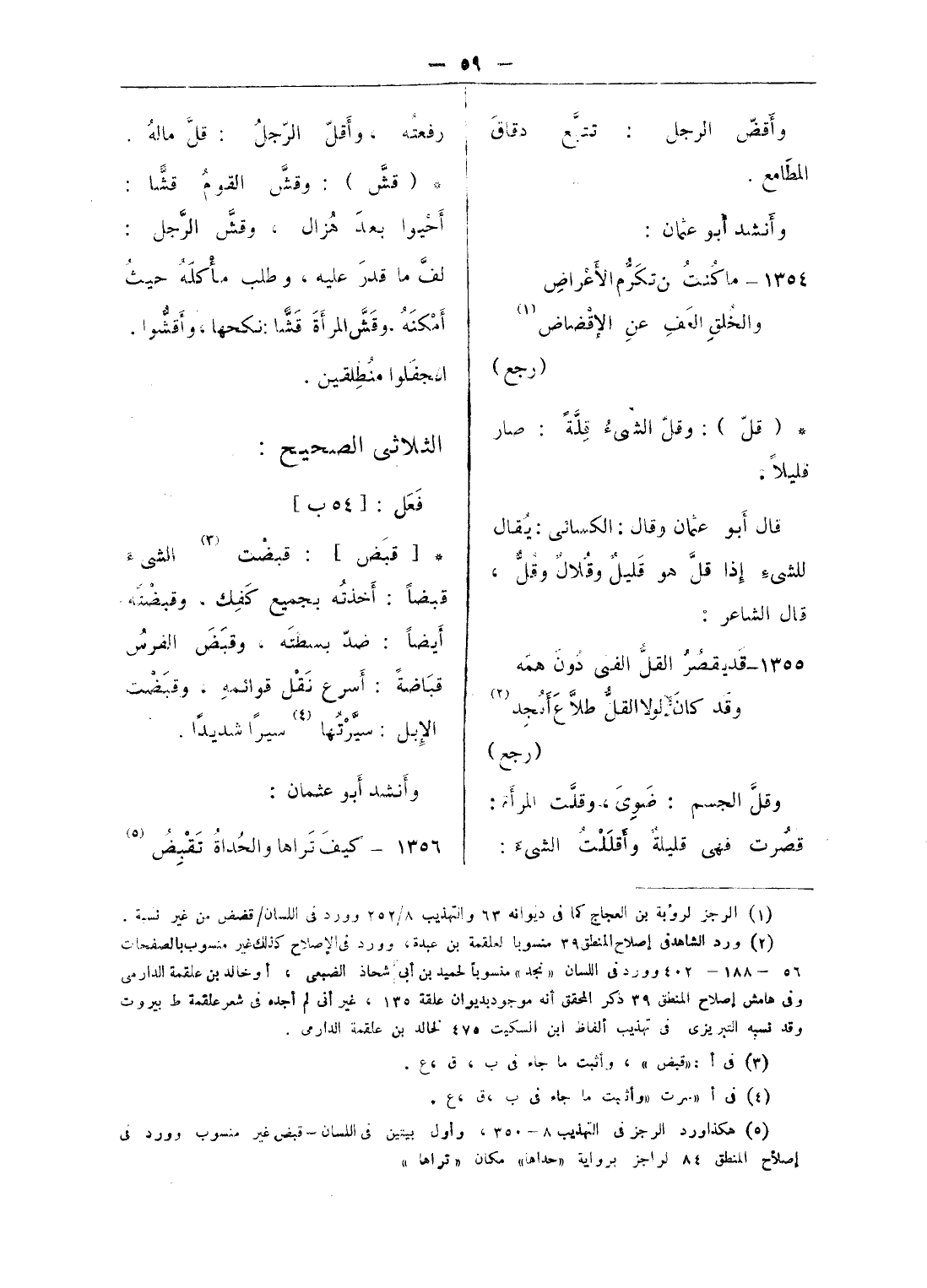 (¬3) ورد الشاهد فى التهذيب 8/ 368 واللسان «قلص» برواية: «بديثا والأشل» ورد فى المقاييس برواية السر قسطى ونسب فى هذه المصادر لأعرابى.