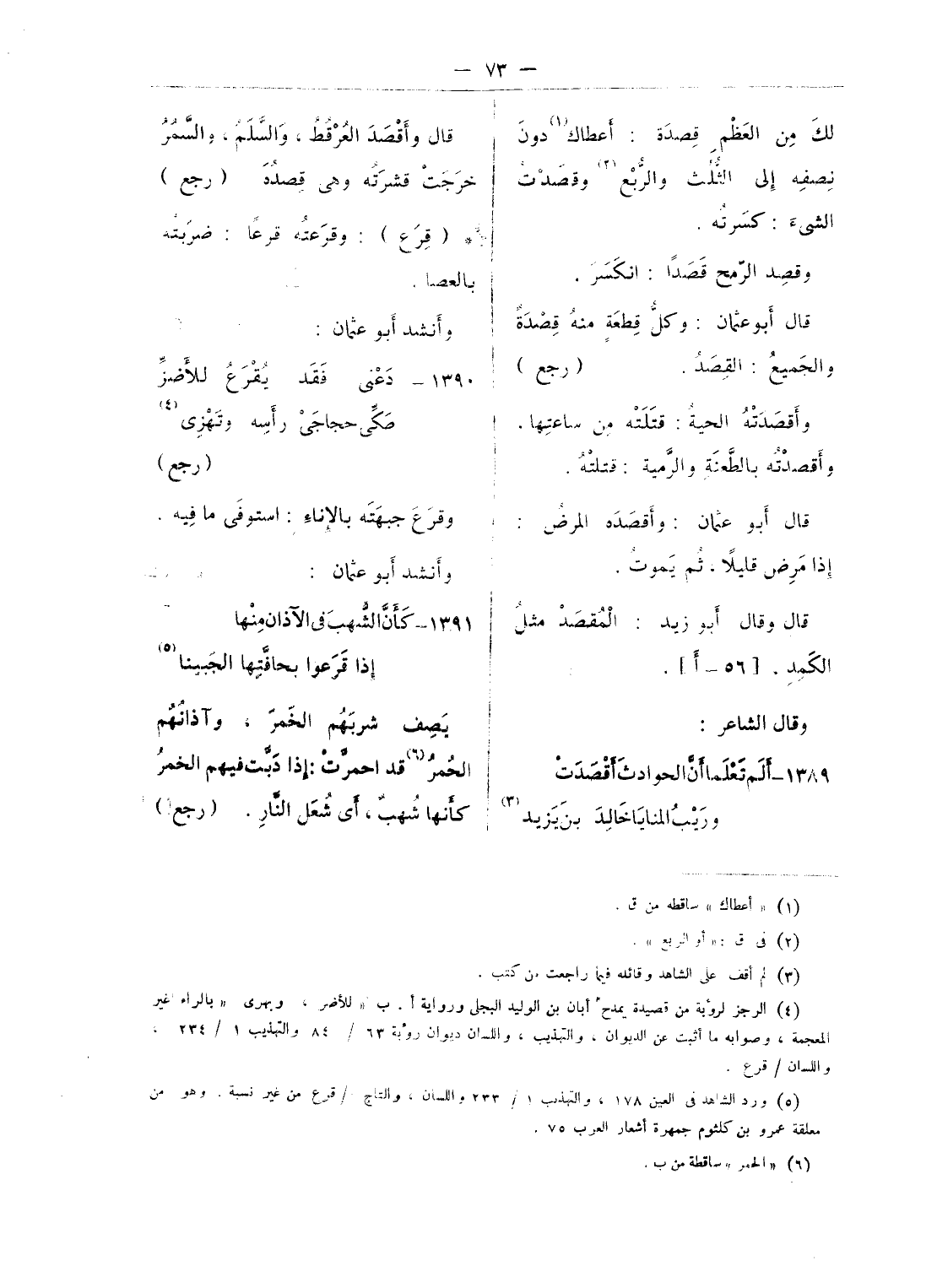 (¬3) ذكرت عقب ذلك من النسخة أالمادة «قحط» وقد سبق ذكرها فى بناء فعل - بفتح العين - من الثلاثى الصحيح فى نفس الباب والذى زيد هنا فى نسخة «ا» قال أبو عثمان: ويقال أيضا قحط القطر لغتان «رجع. انظر المادة قبل ذلك