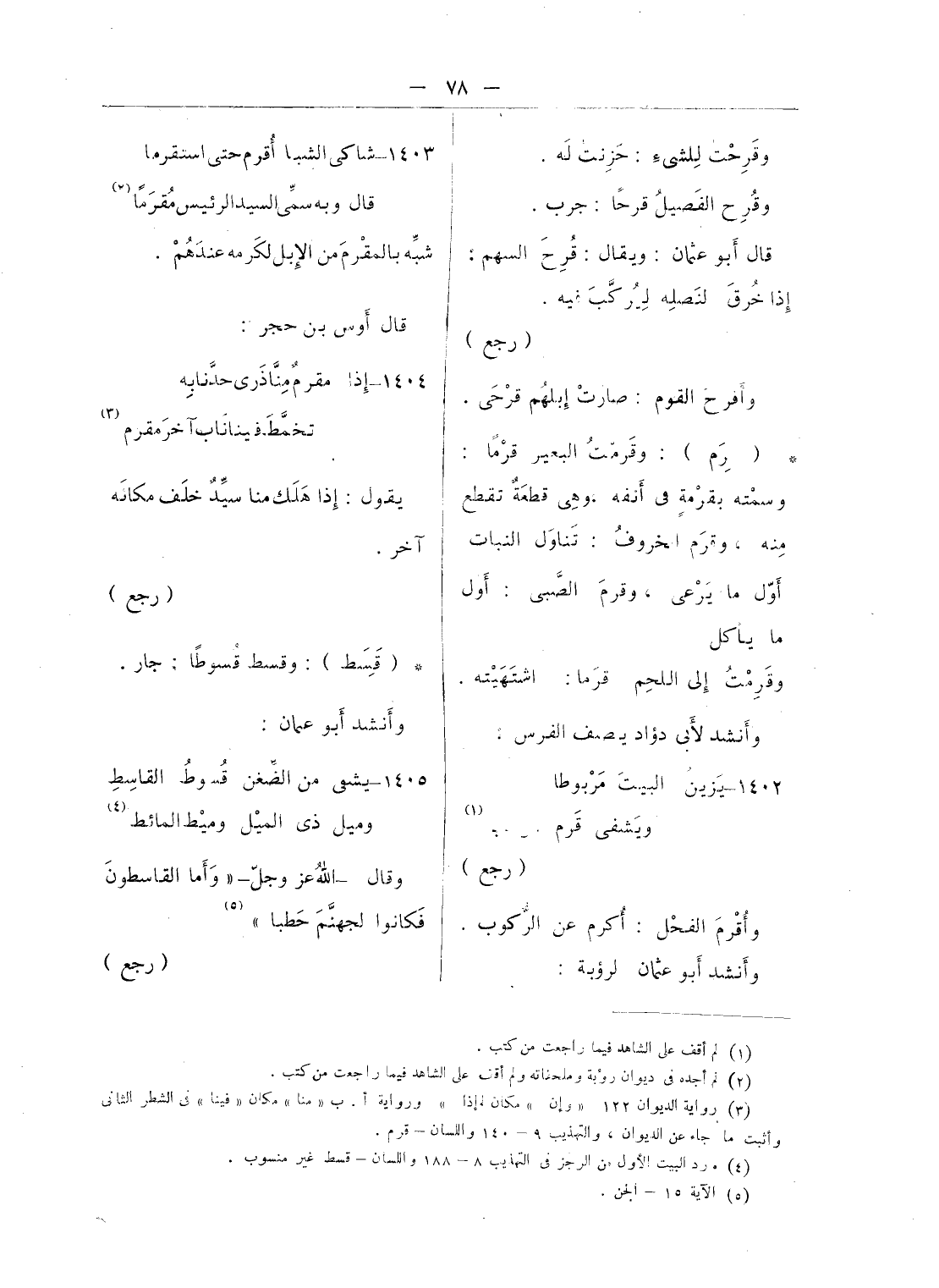 (¬5) جاء فى الجمهرة 2 - 347، واللسان/ قرش منسوبا لأبى زبيد، وفى اللسان «تقرش» مكان «تقارش» ..