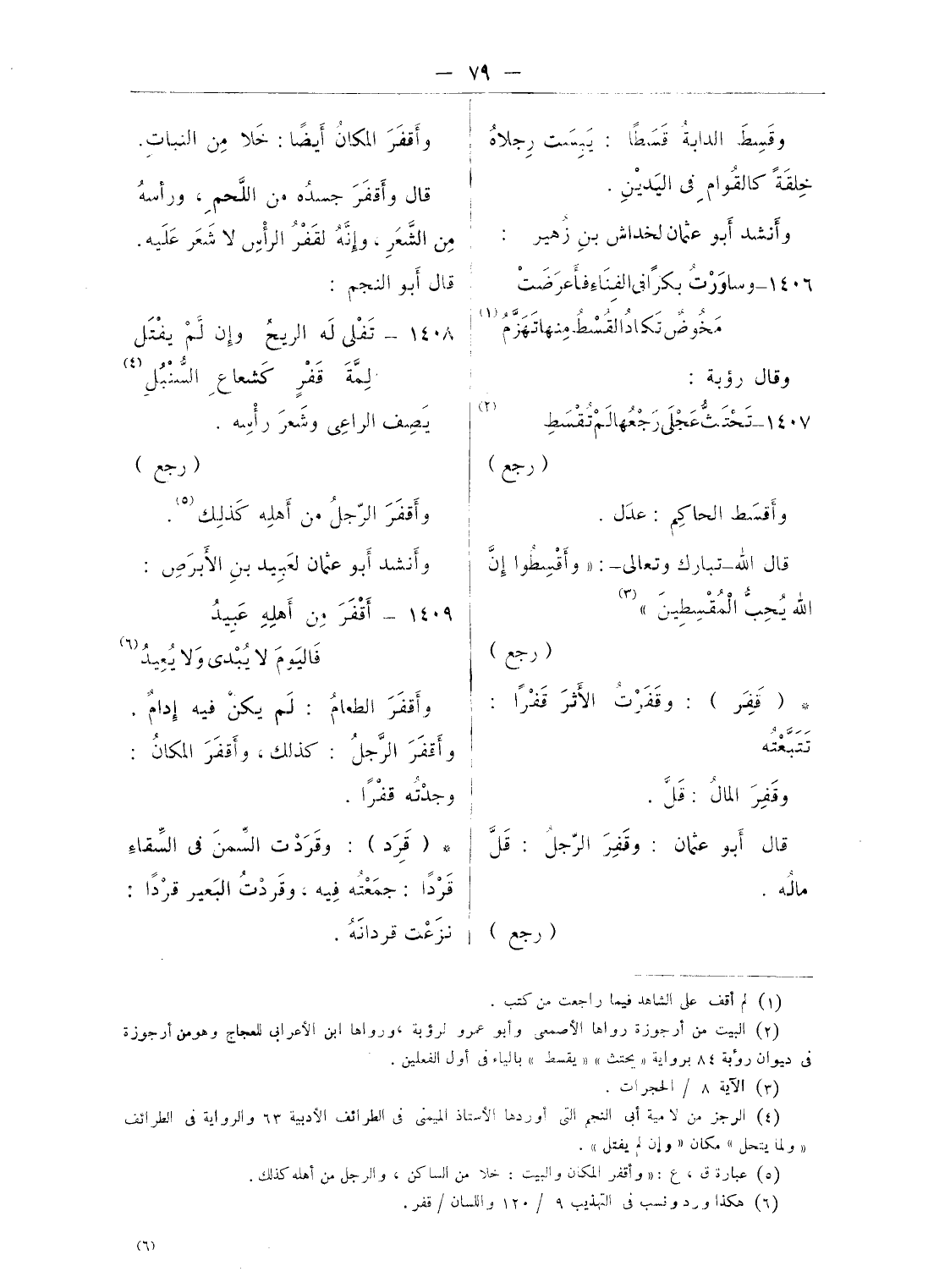 (¬5) جاء البيت الأول ثانى بيتين فى كتاب القلب والإبدال المنسوب لابن السكيت 22 ضمن مجموعة الكنز اللغوى منسوبا لزينب بنت أوس برواية: