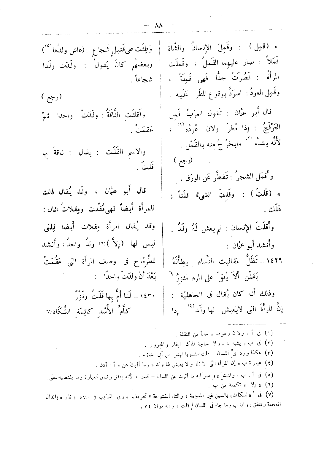 (¬2) فى عبارة ق، ع: بعض اختلاف وفيهما «والشاة قموءا: سننت» زيادة لم يذكرها السرقسطى